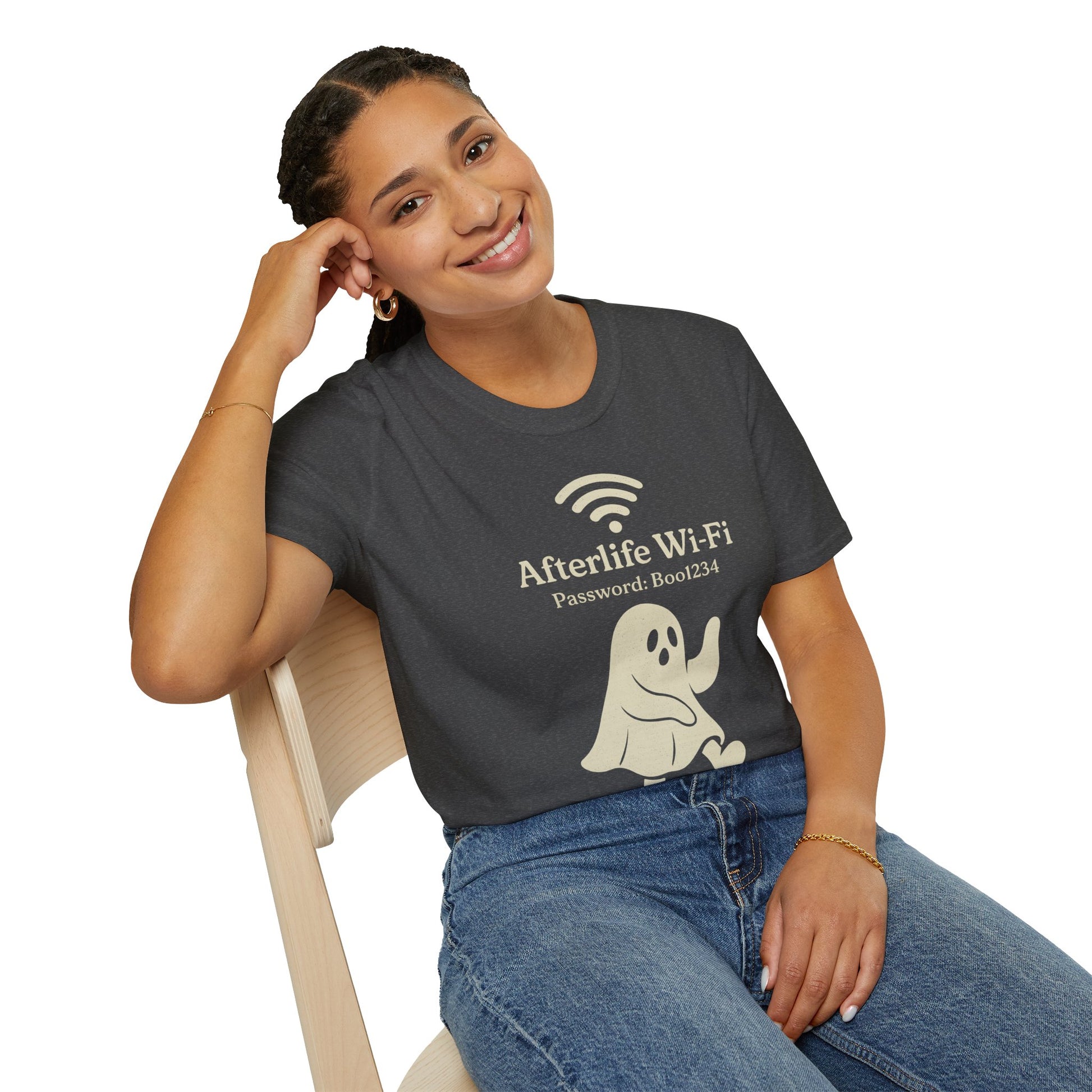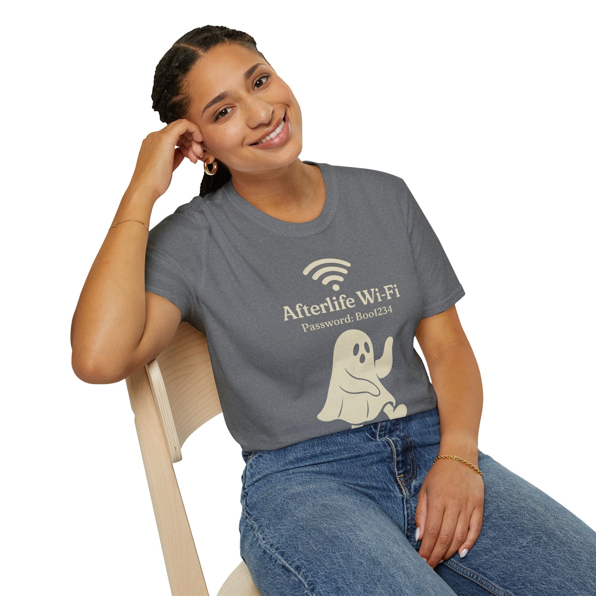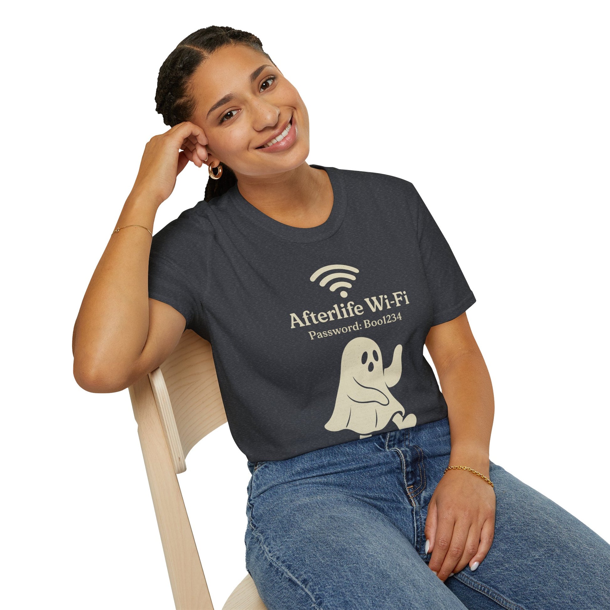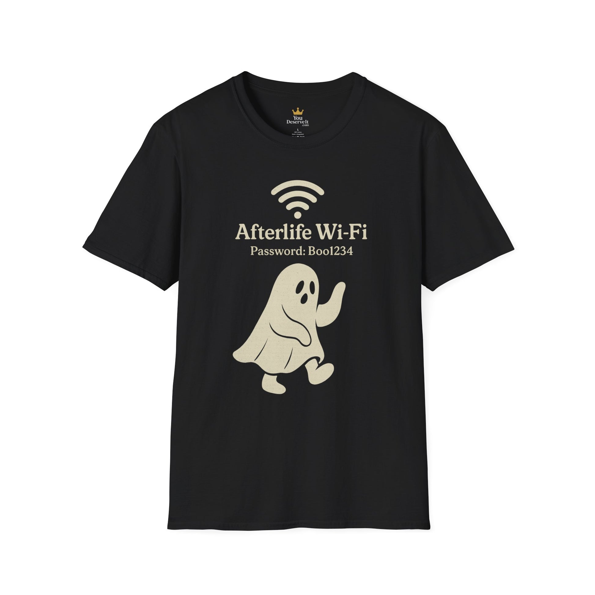 Afterlife Wi-Fi Ghost Tee | Funny Halloween Shirt with "Boo1234" Password
