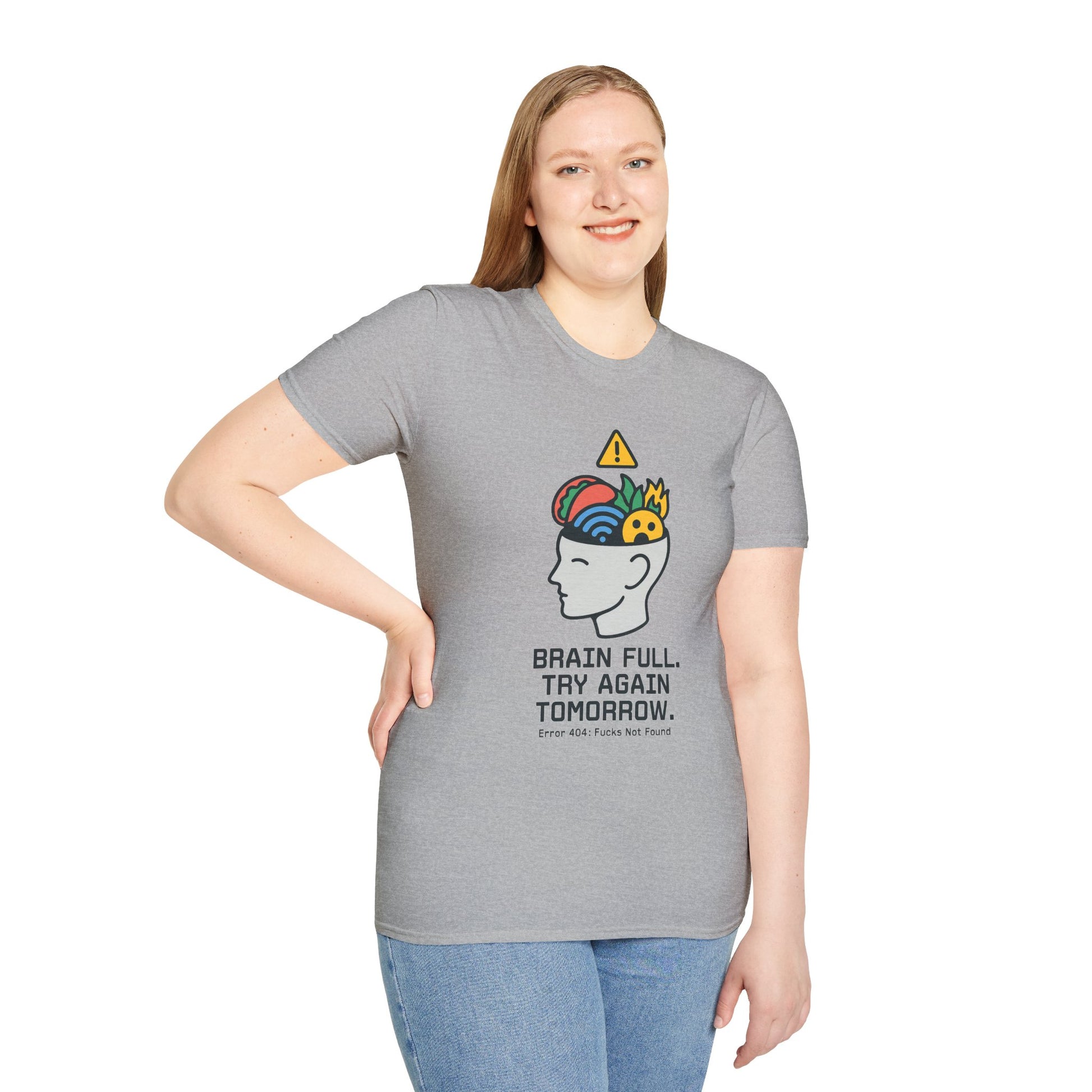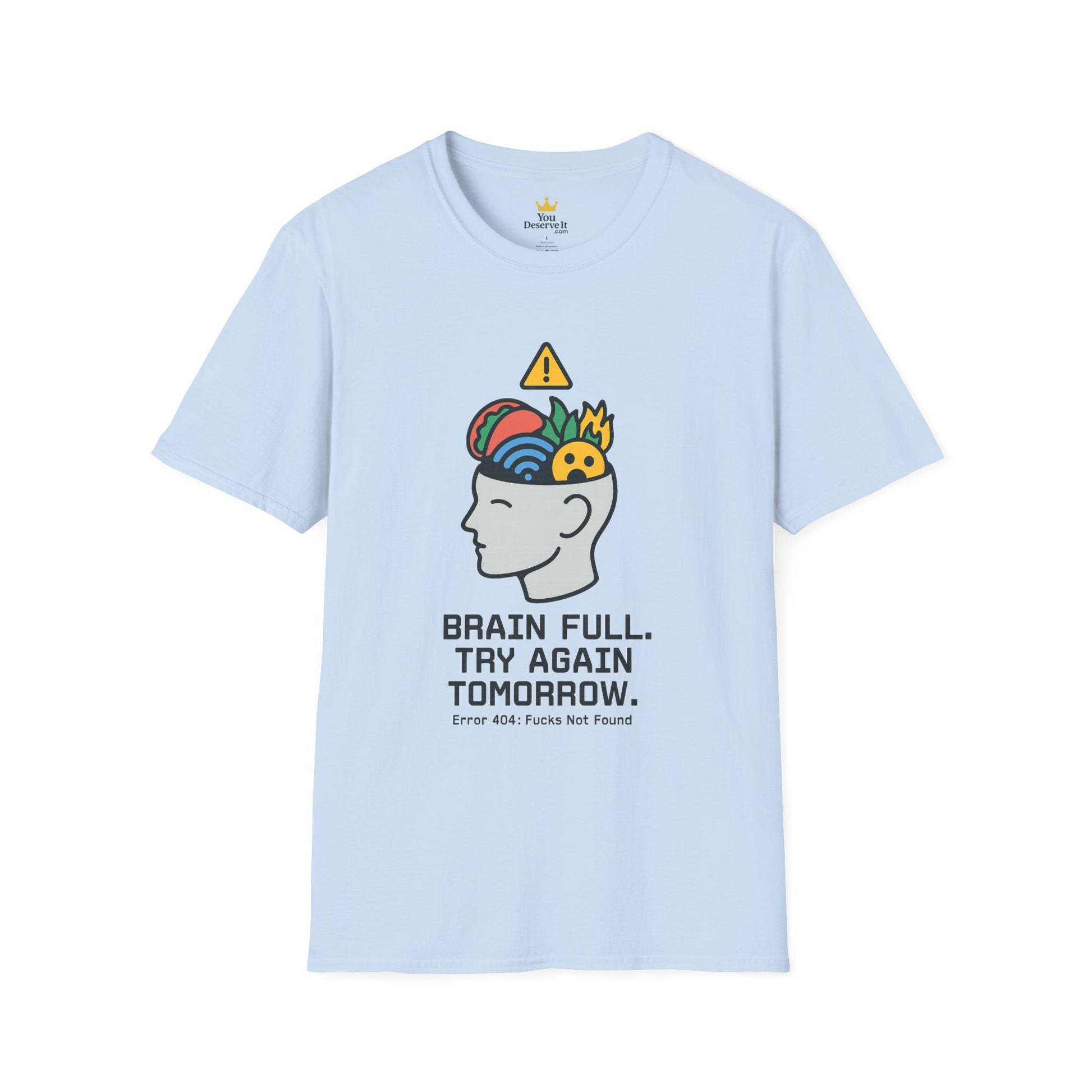 Brain Full Error T-Shirt – Funny Tech Nerd Graphic Tee for Overworked Minds
