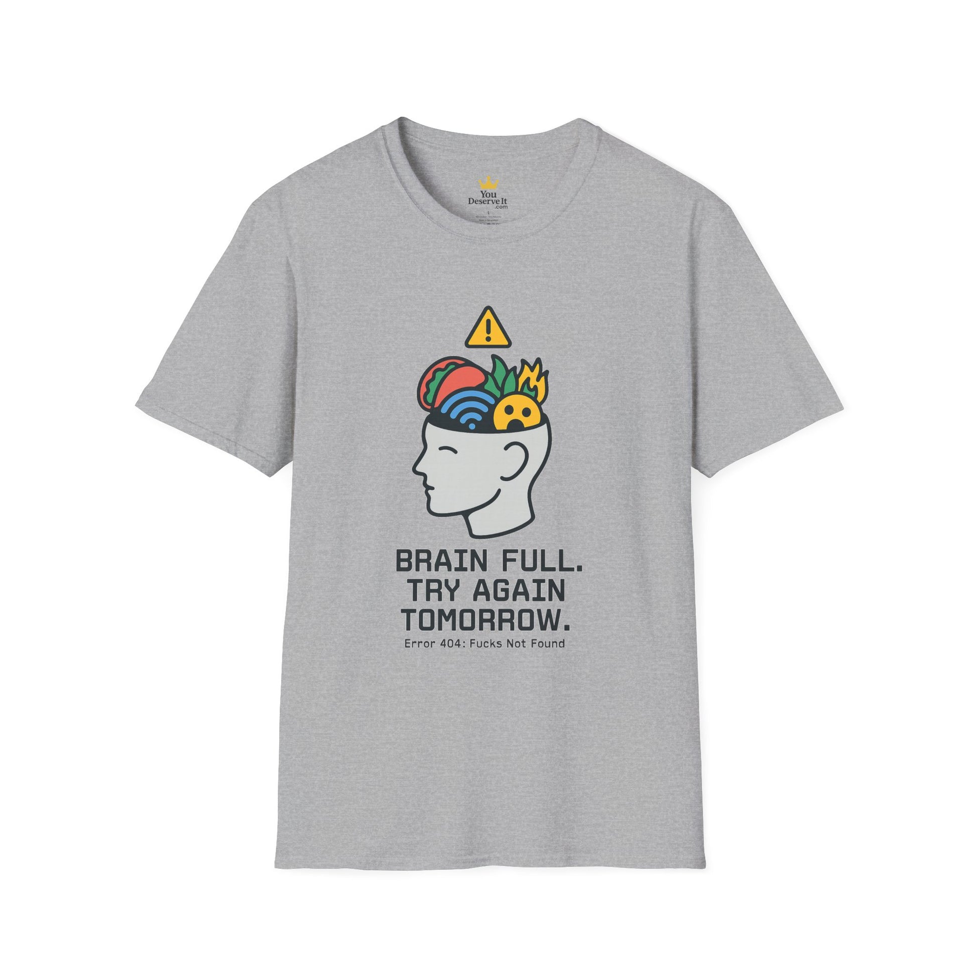 Brain Full Error T-Shirt – Funny Tech Nerd Graphic Tee for Overworked Minds