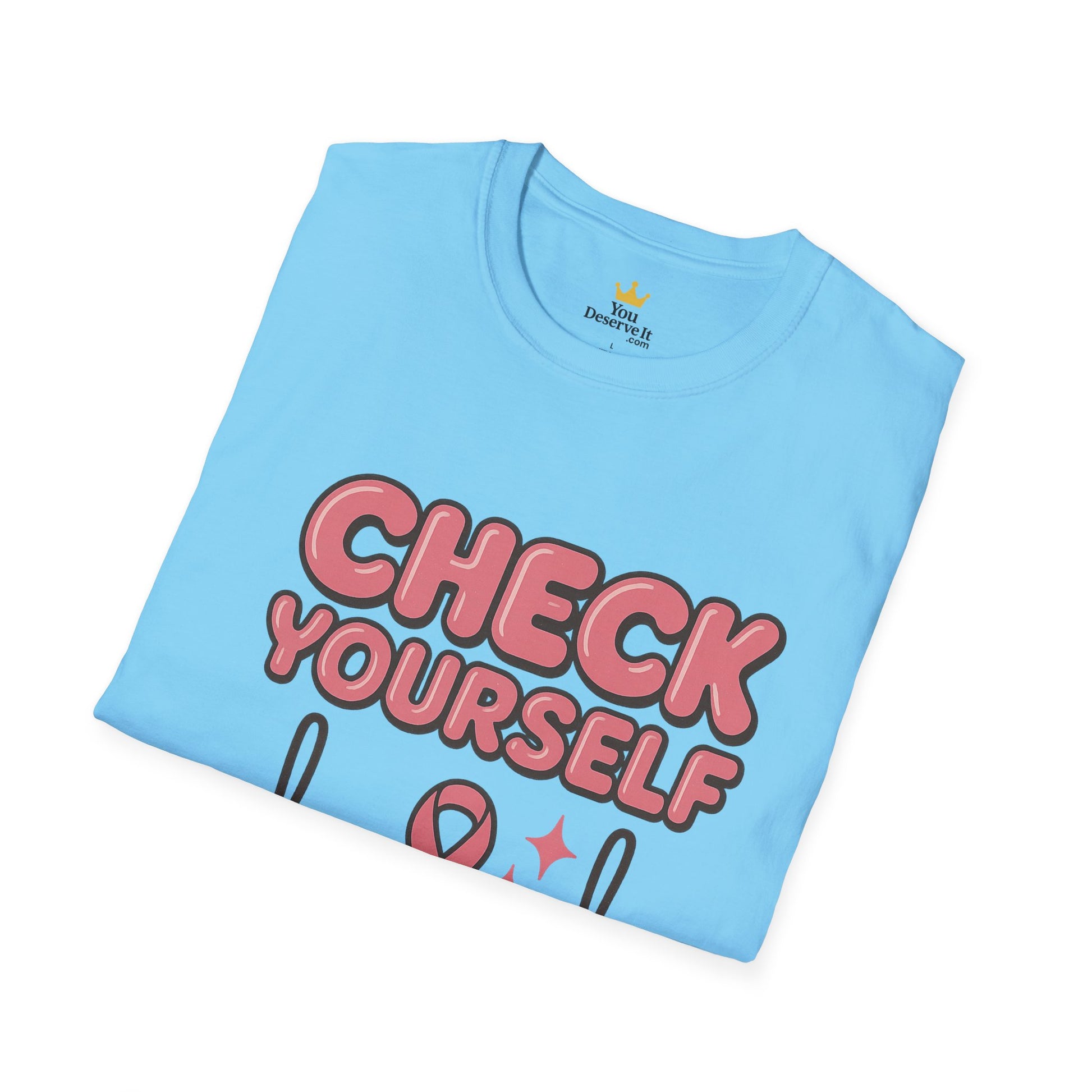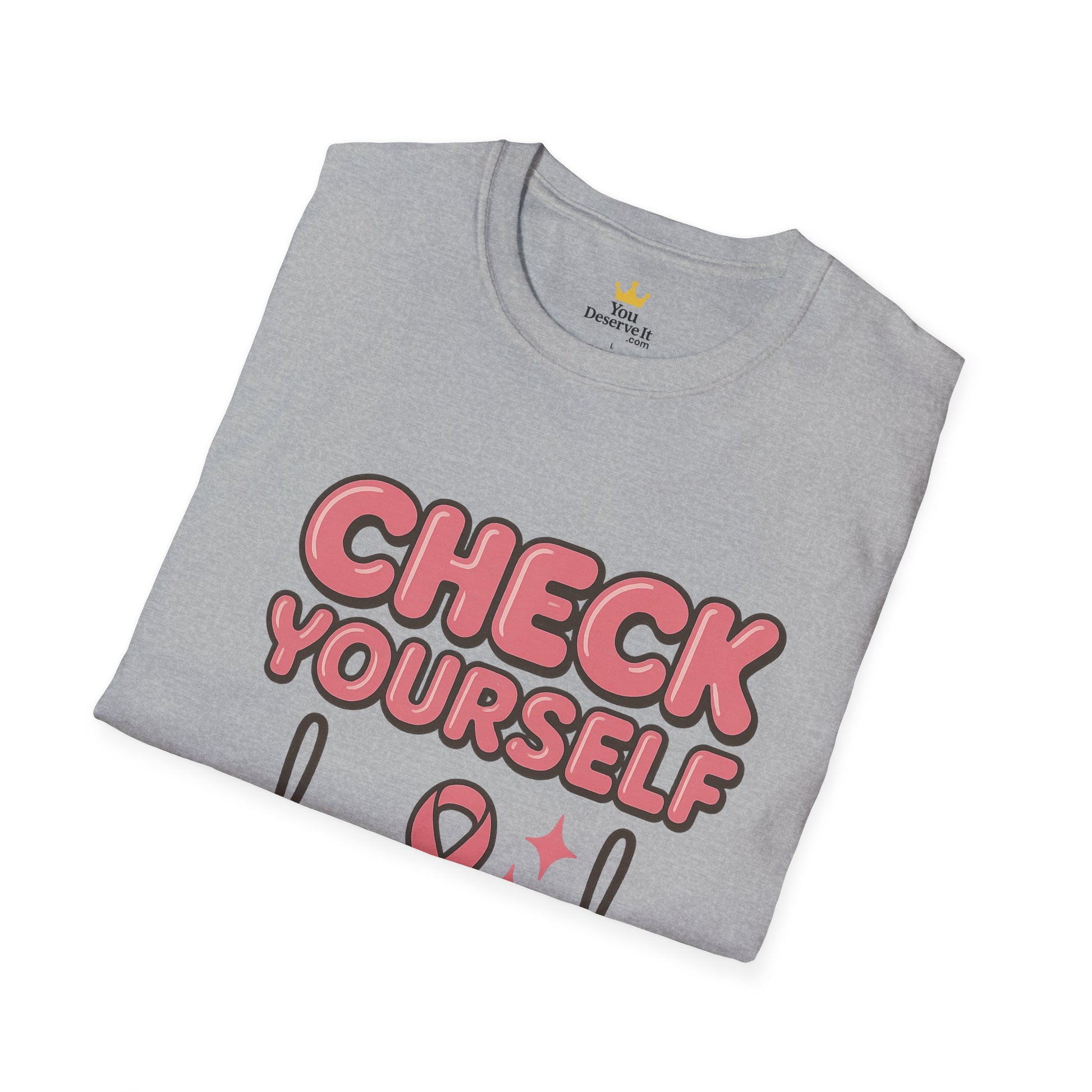 Check Yourself Breast Cancer Awareness T-Shirt | Funny Bra Ribbon Tee for Women