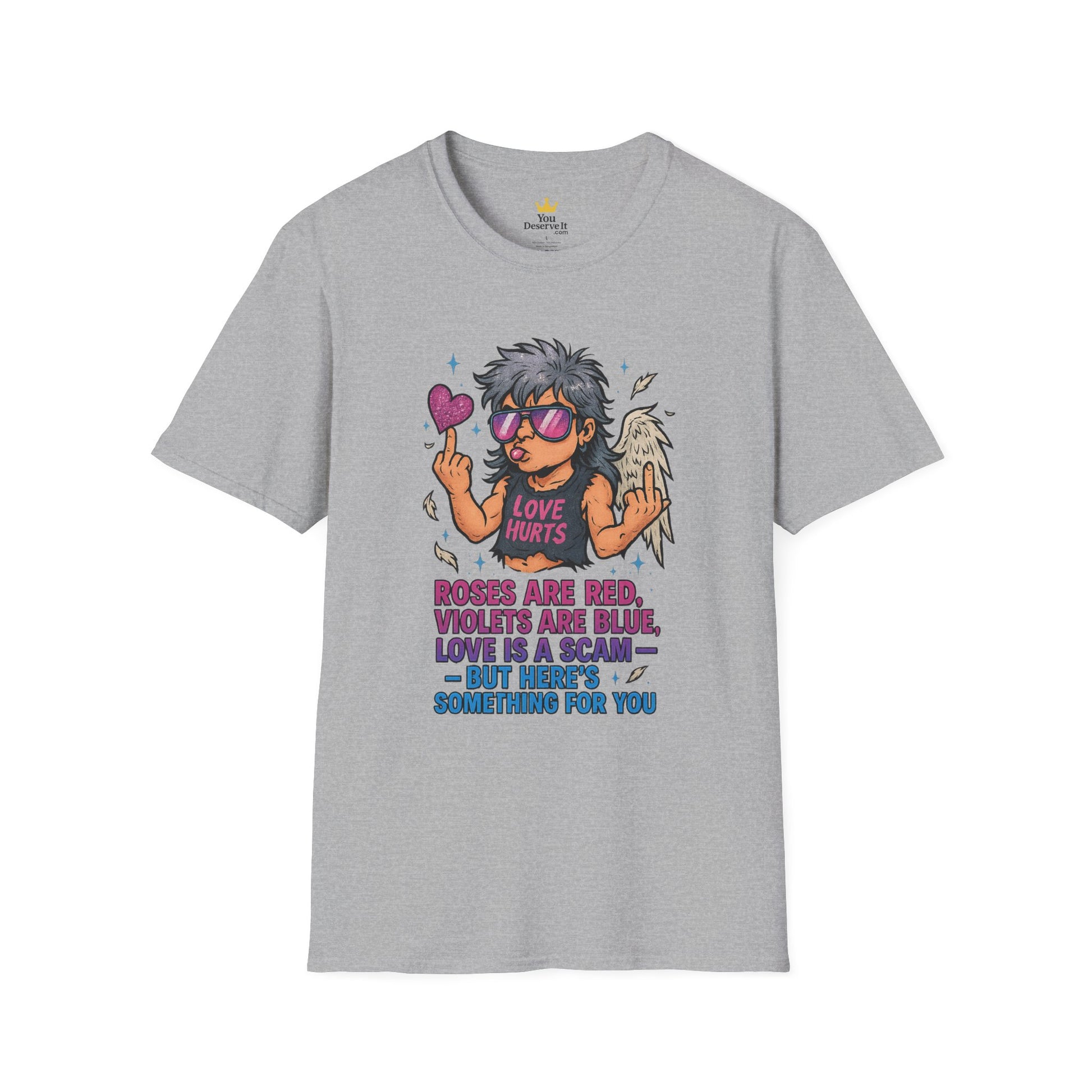 Love Is a Scam | Sarcastic Anti-Valentine's Day Cupid Tee | Funny Unisex T-Shirt