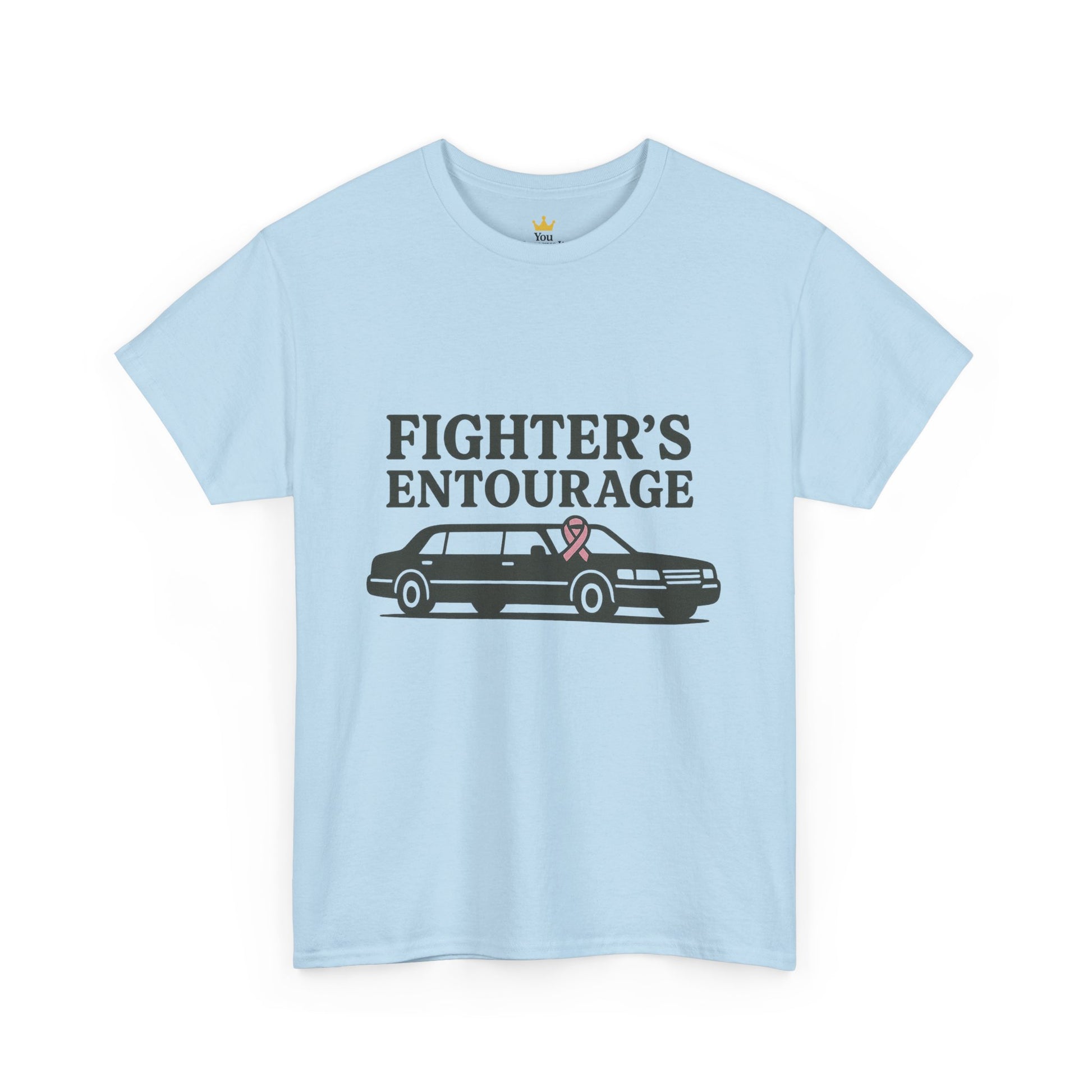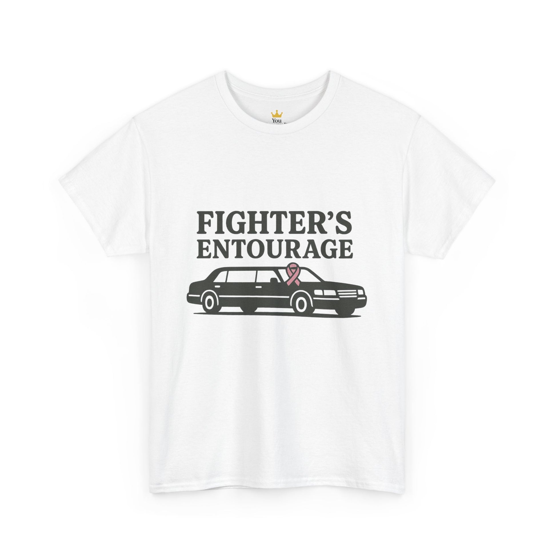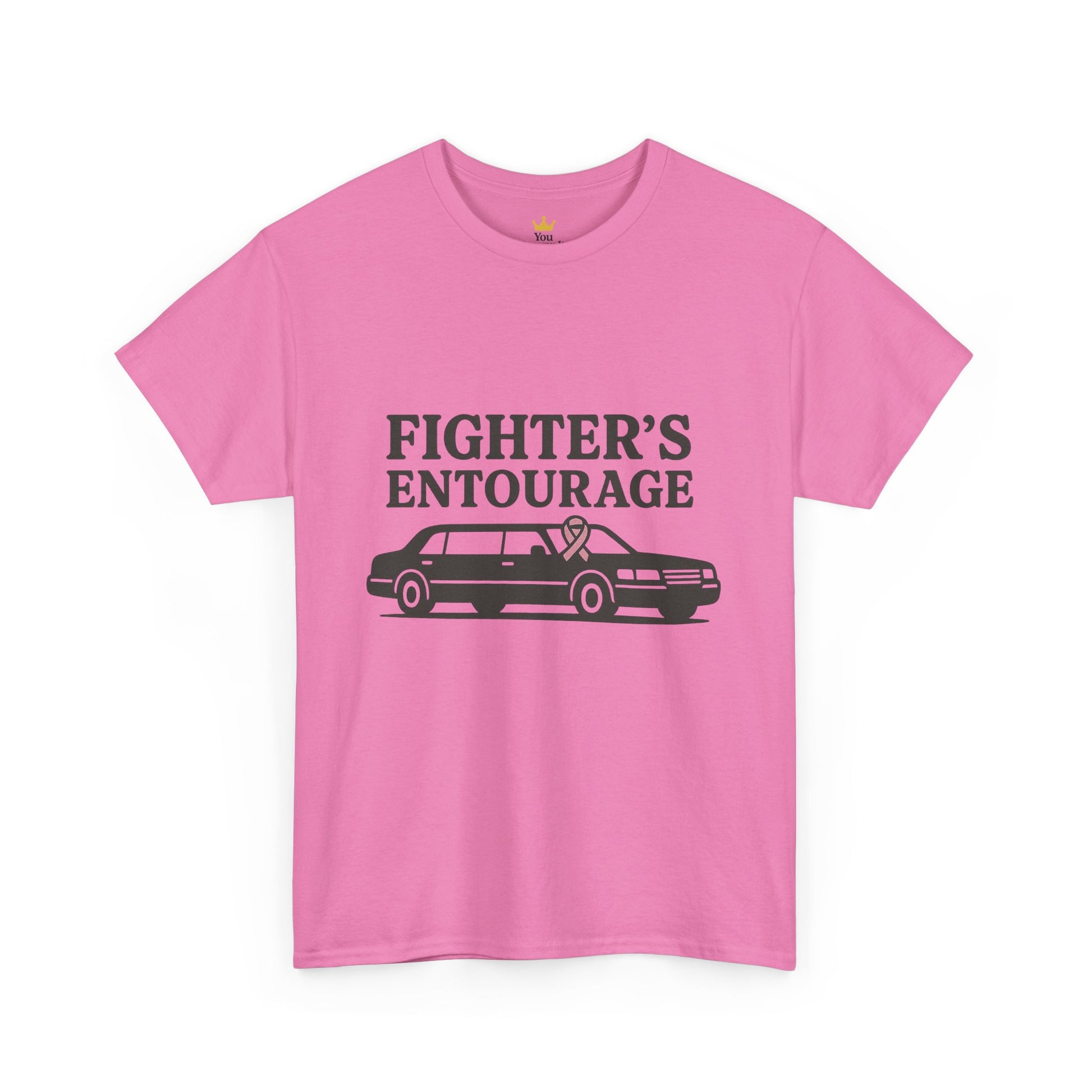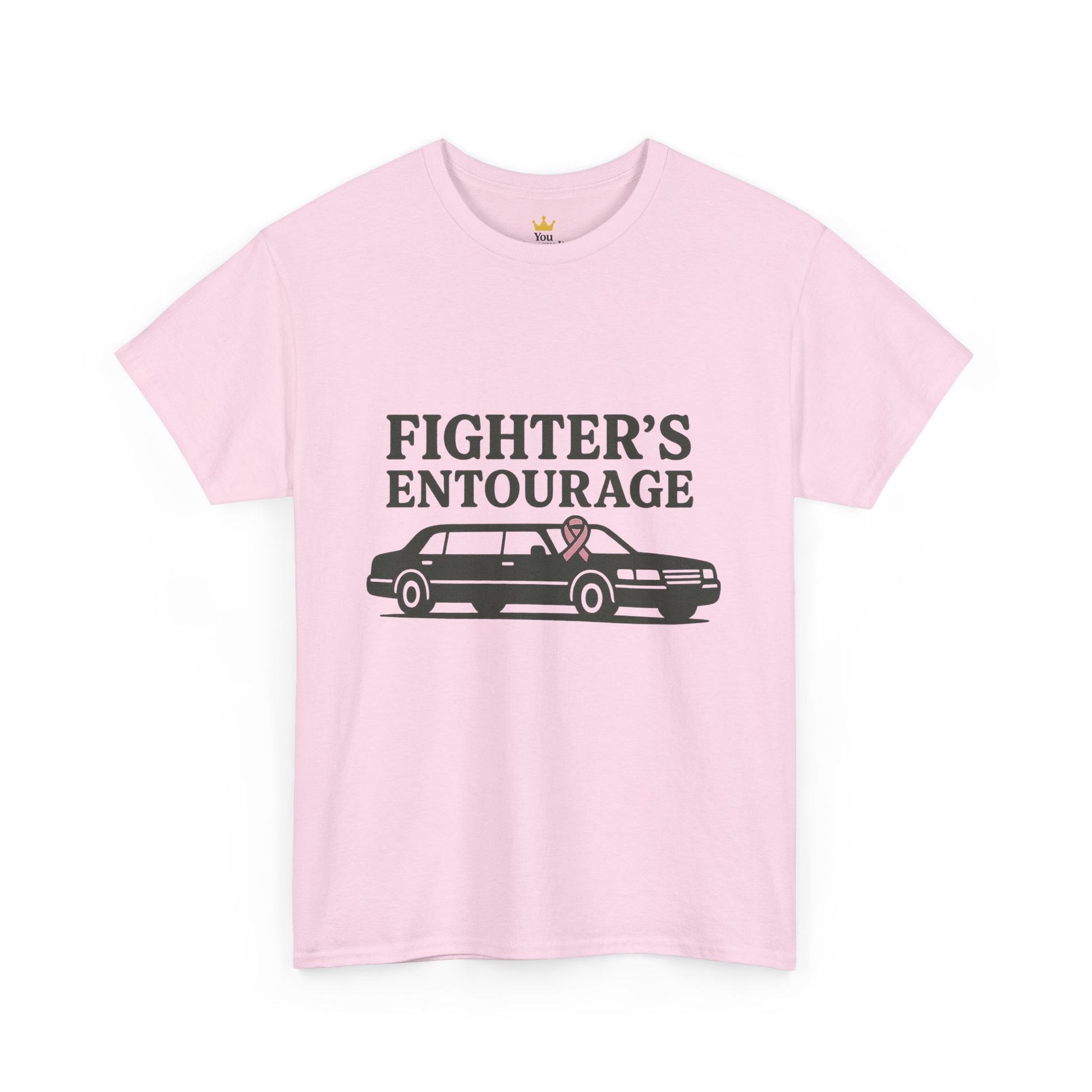 Roll deep in solidarity. The “Fighter’s Entourage” shirt features a sleek limo adorned with a pink ribbon—because behind every warrior is a crew that rides hard for them. Whether you're supporting a loved one or showing the world your fighter pride, this tee makes a bold, stylish statement.