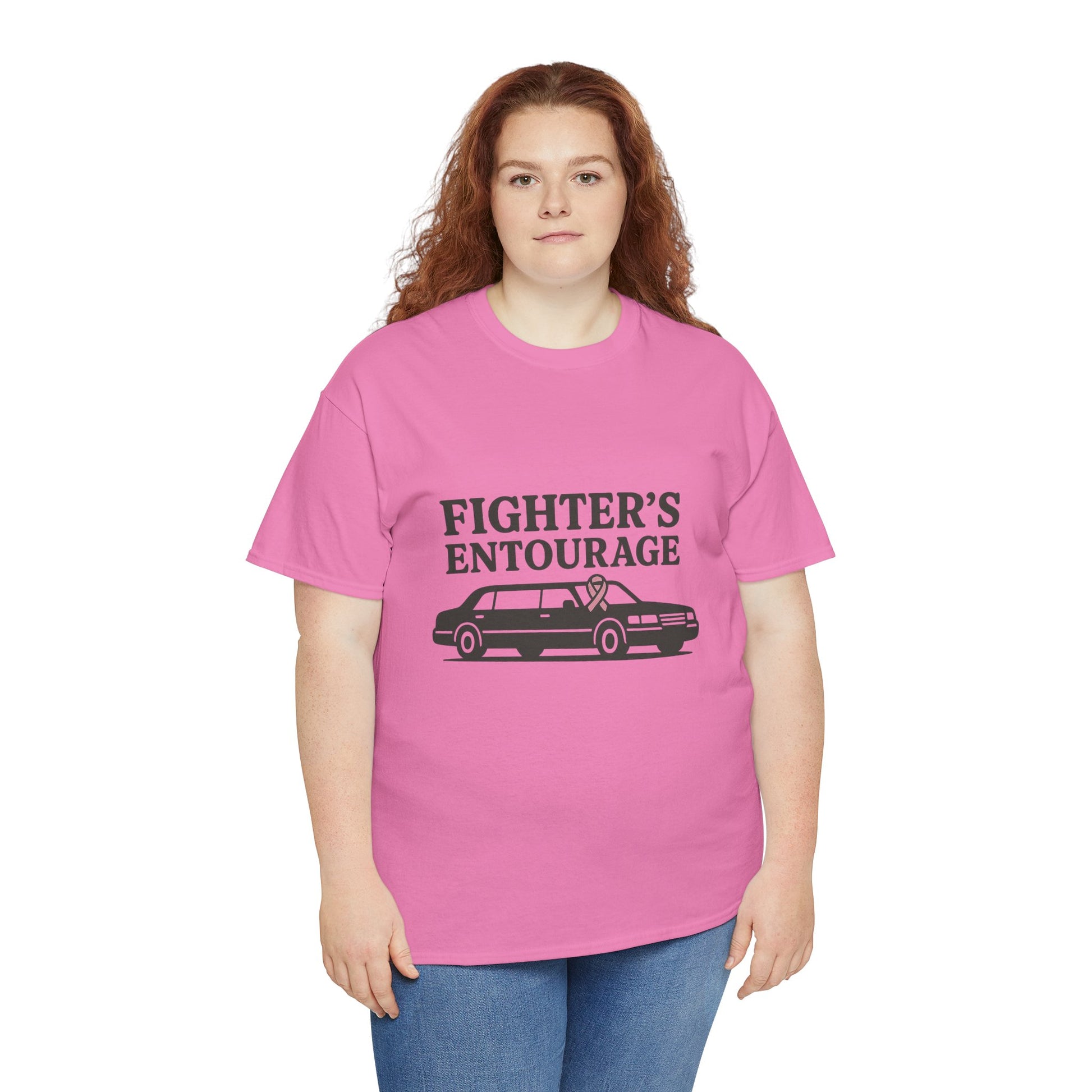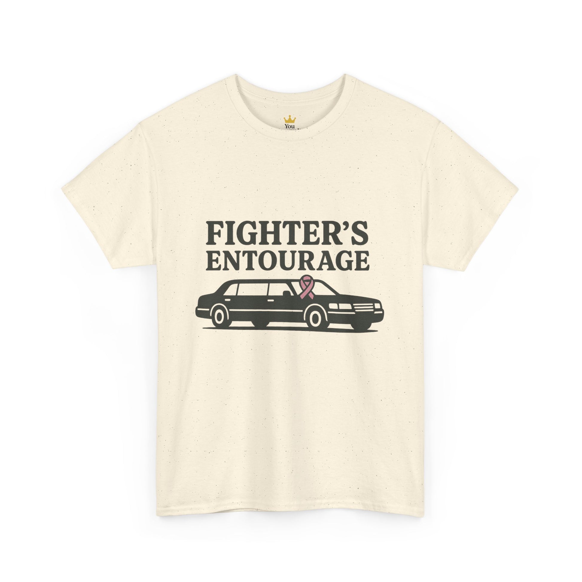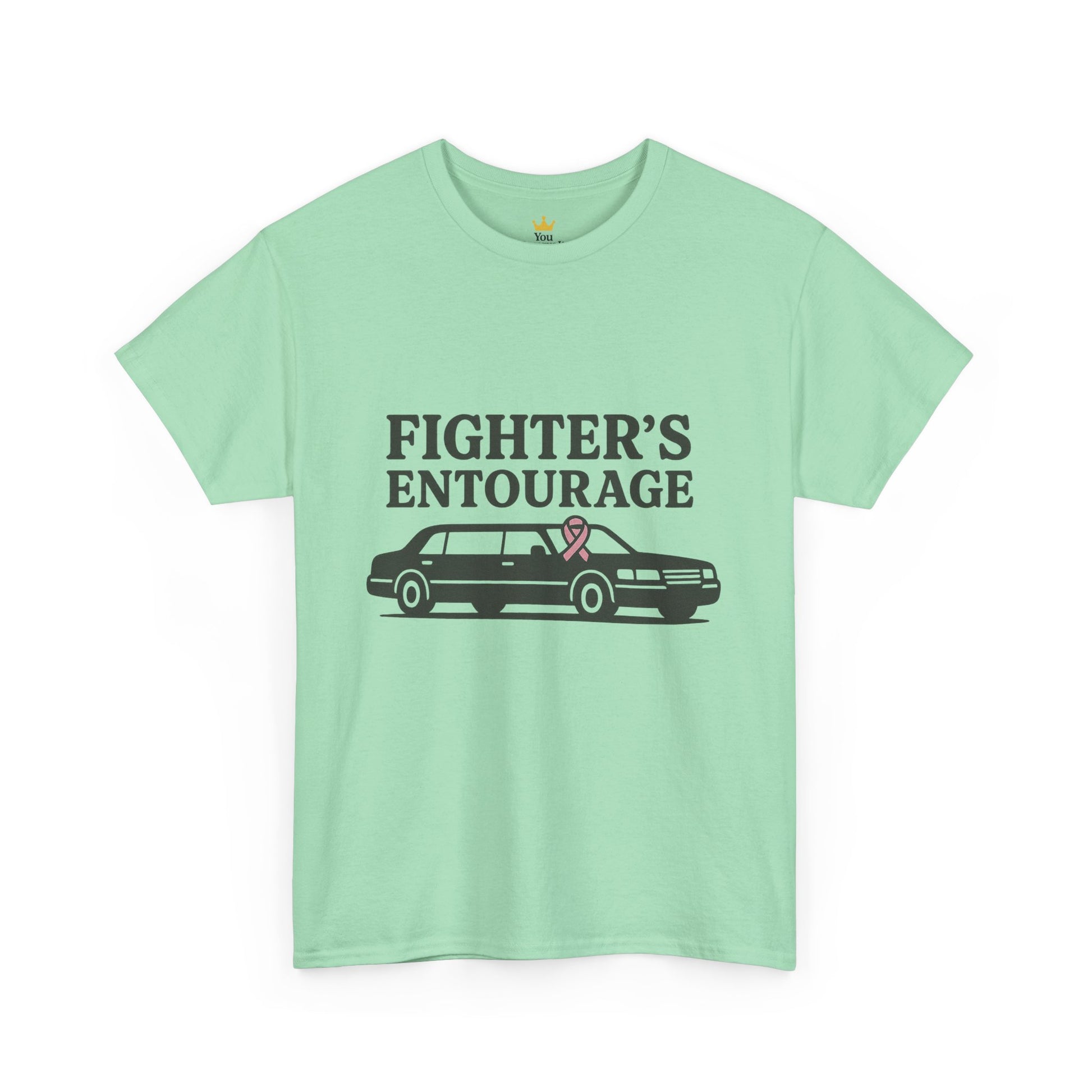 Roll deep in solidarity. The “Fighter’s Entourage” shirt features a sleek limo adorned with a pink ribbon—because behind every warrior is a crew that rides hard for them. Whether you're supporting a loved one or showing the world your fighter pride, this tee makes a bold, stylish statement.