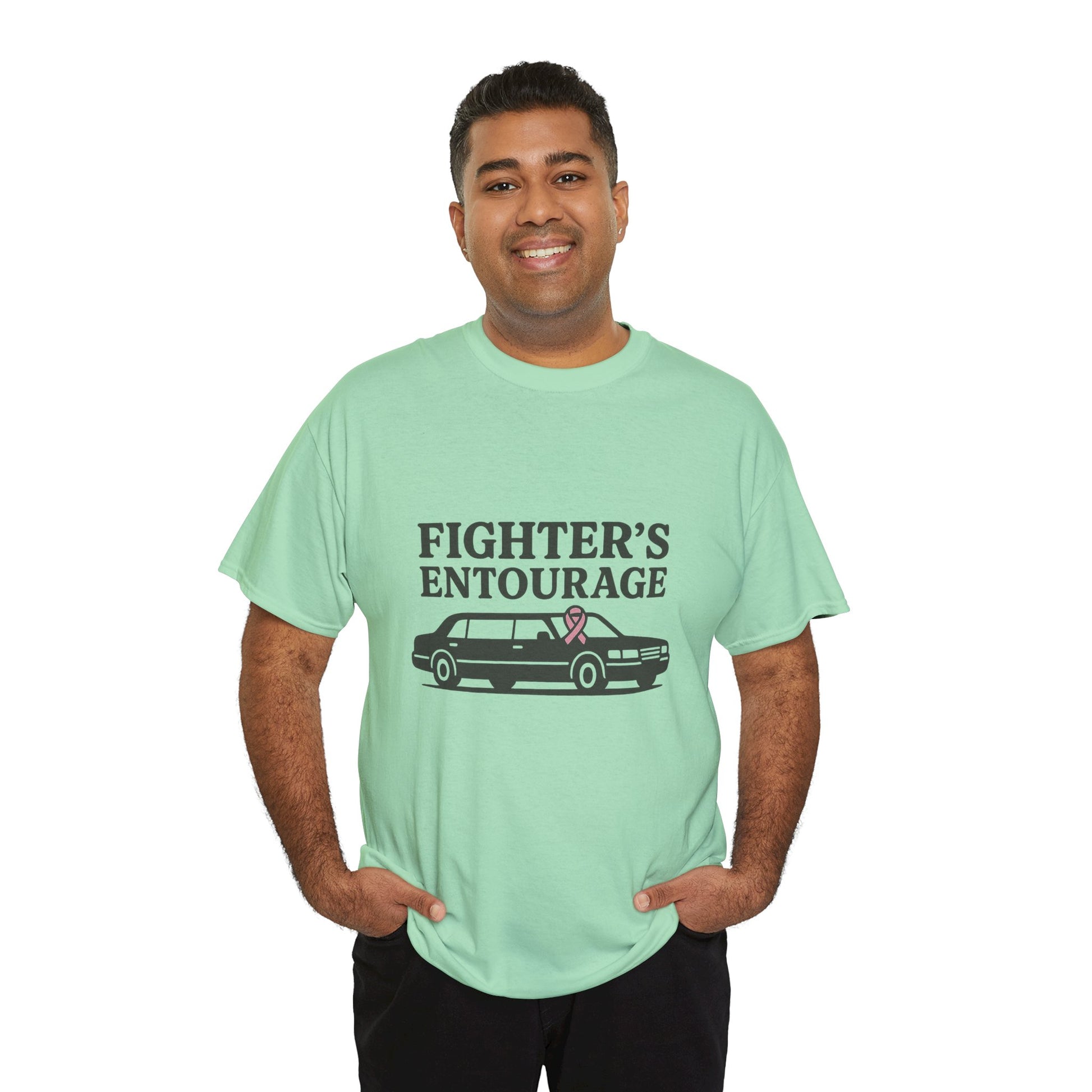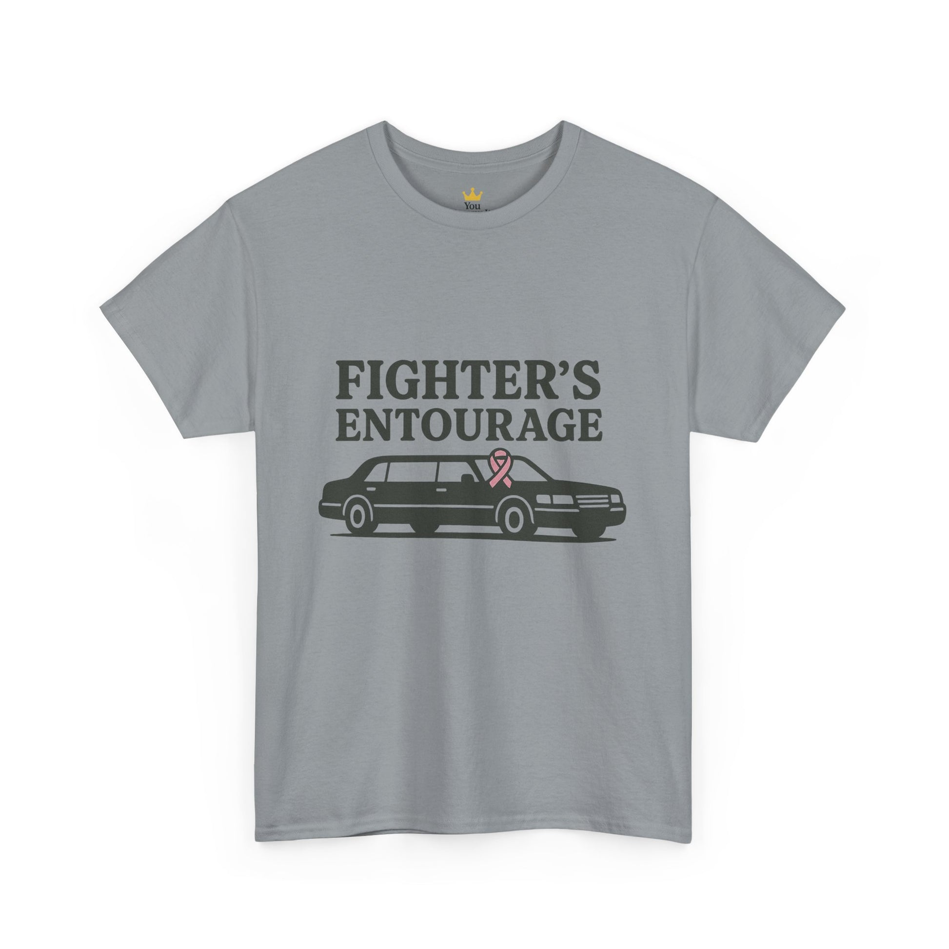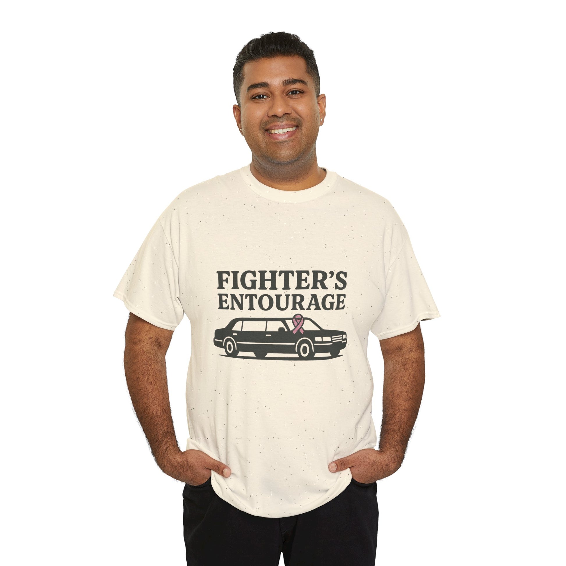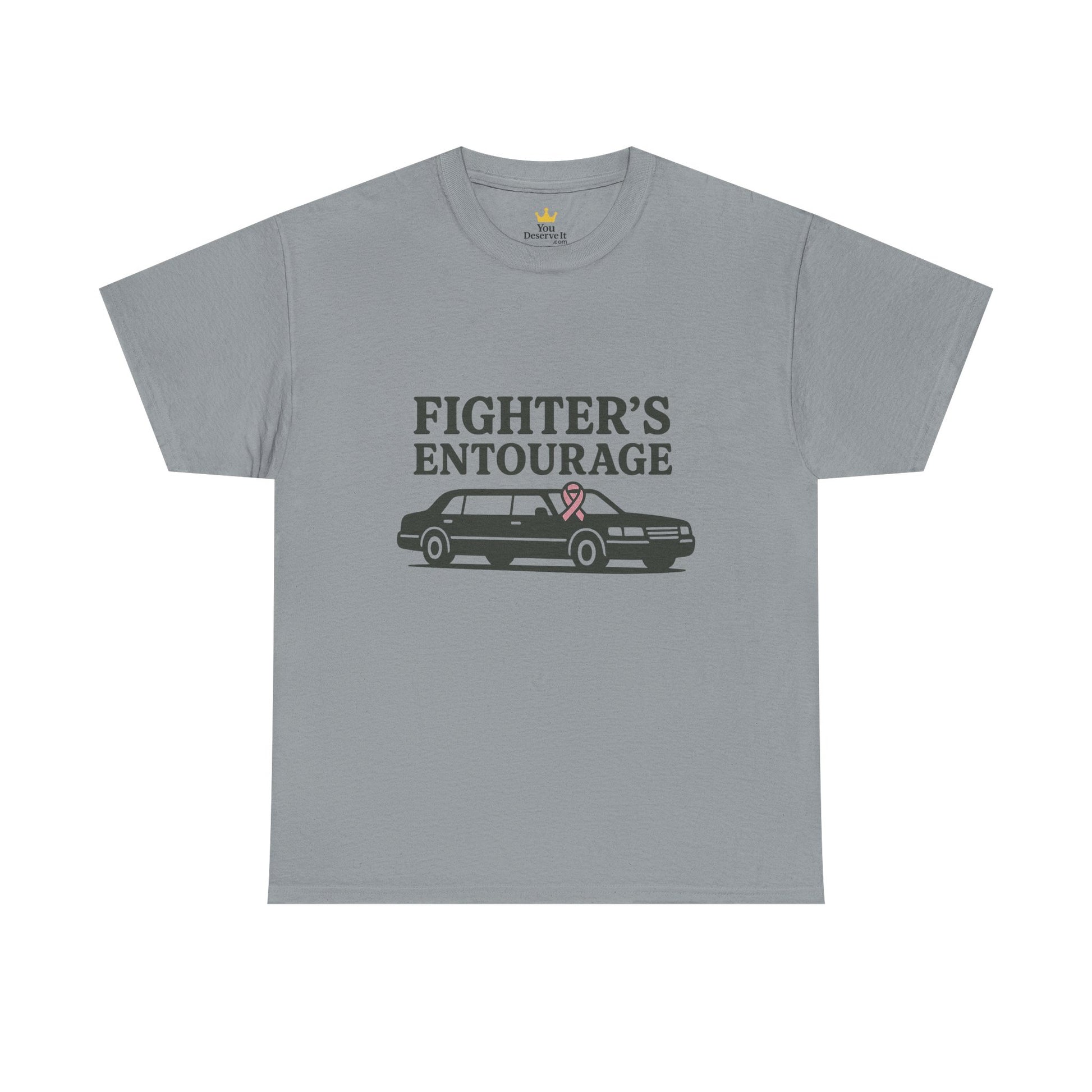 Roll deep in solidarity. The “Fighter’s Entourage” shirt features a sleek limo adorned with a pink ribbon—because behind every warrior is a crew that rides hard for them. Whether you're supporting a loved one or showing the world your fighter pride, this tee makes a bold, stylish statement.
