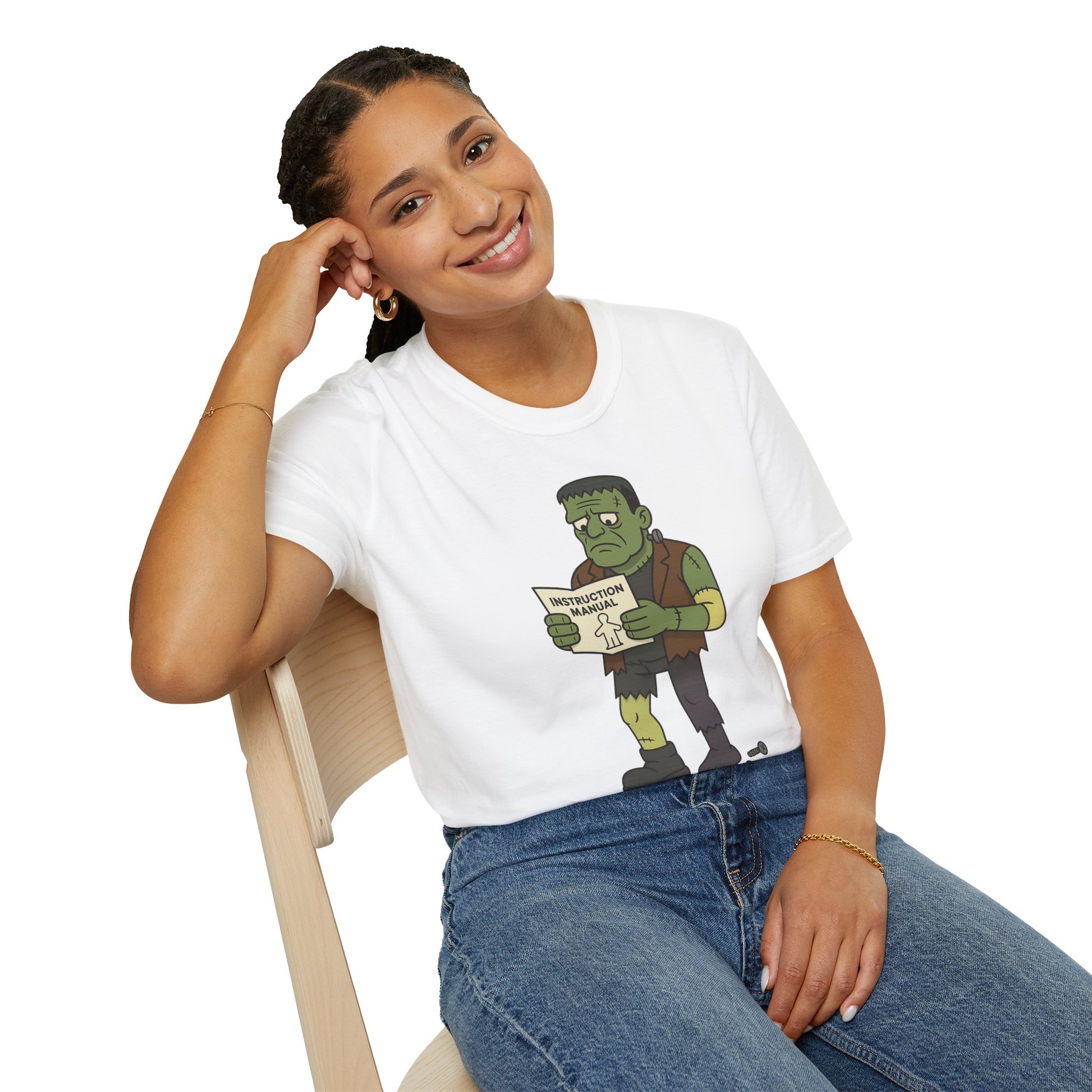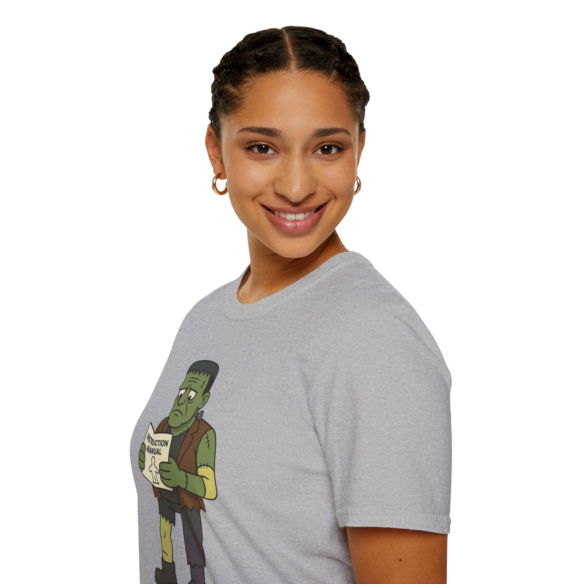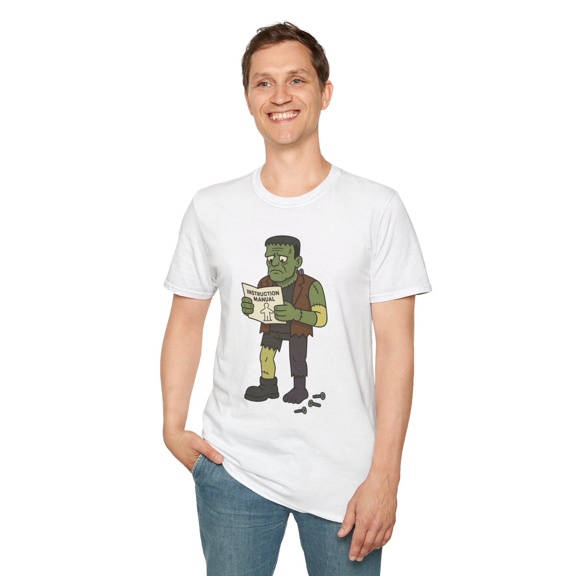 Funny Frankenstein T-Shirt, Unisex Softstyle Tee, Halloween Costume, Horror Movie Lover Gift, Cozy Casual Wear, Graphic Tee
