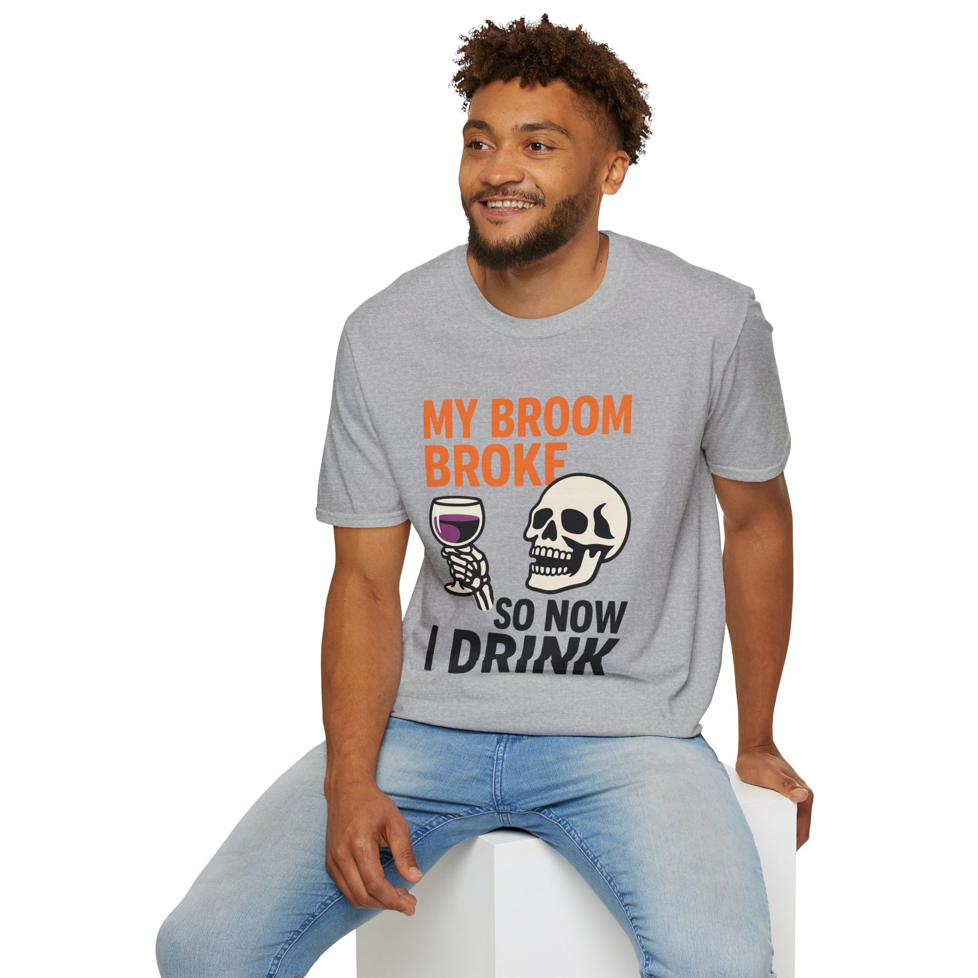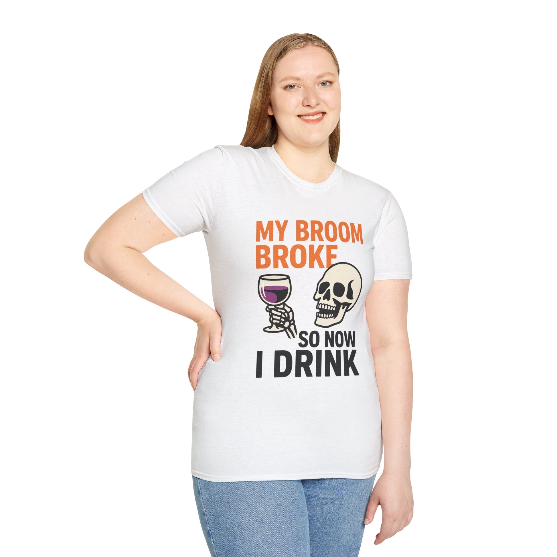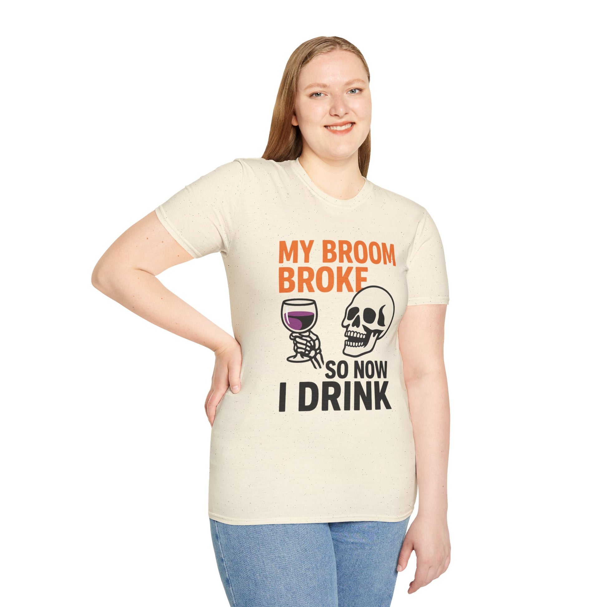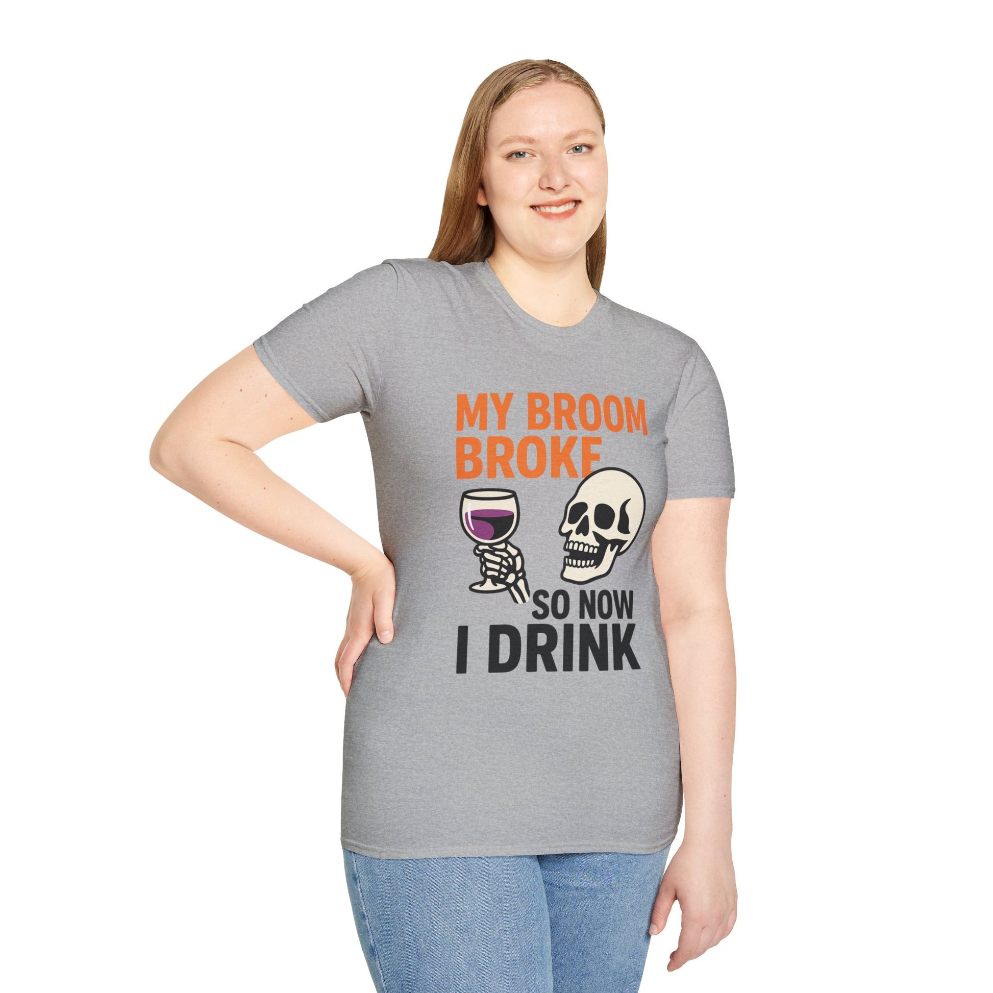 Funny Halloween Shirt – “My Broom Broke So Now I Drink” Sarcastic Graphic Tee