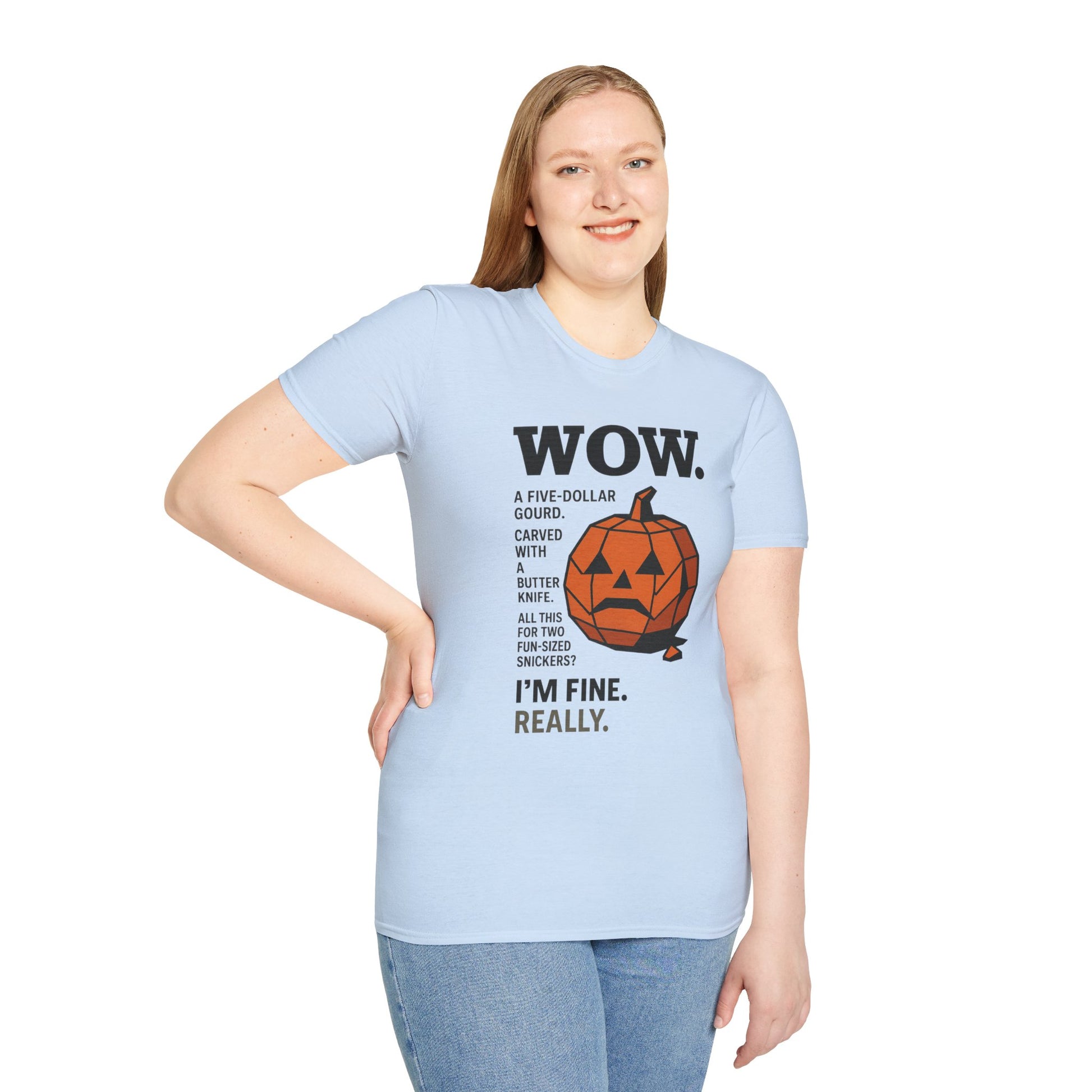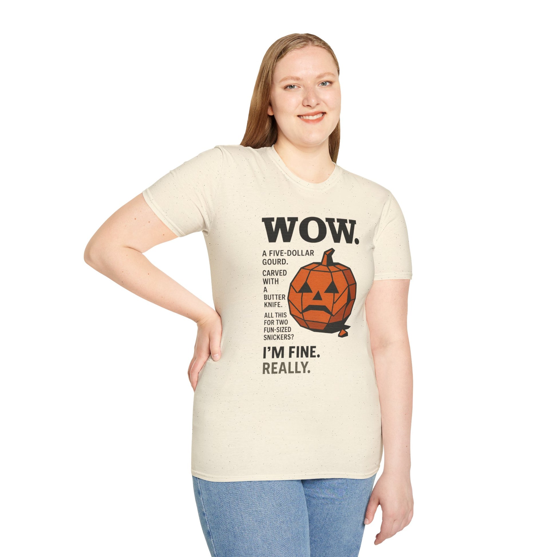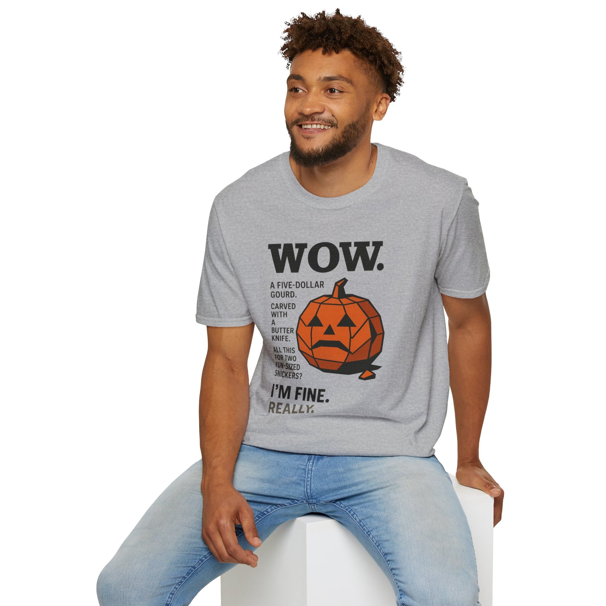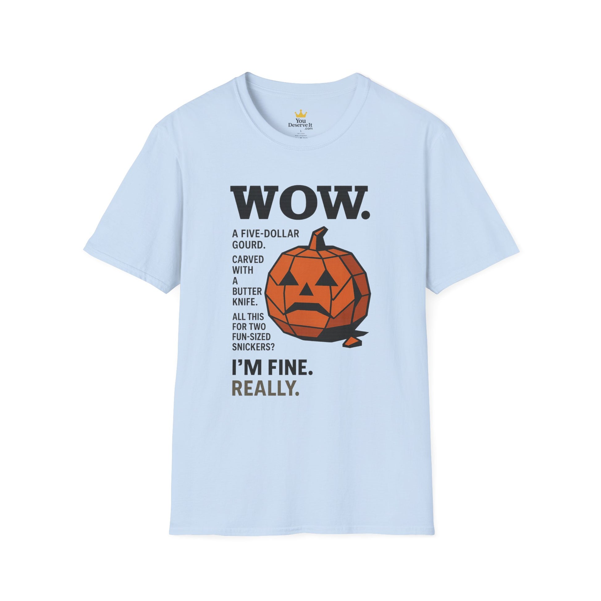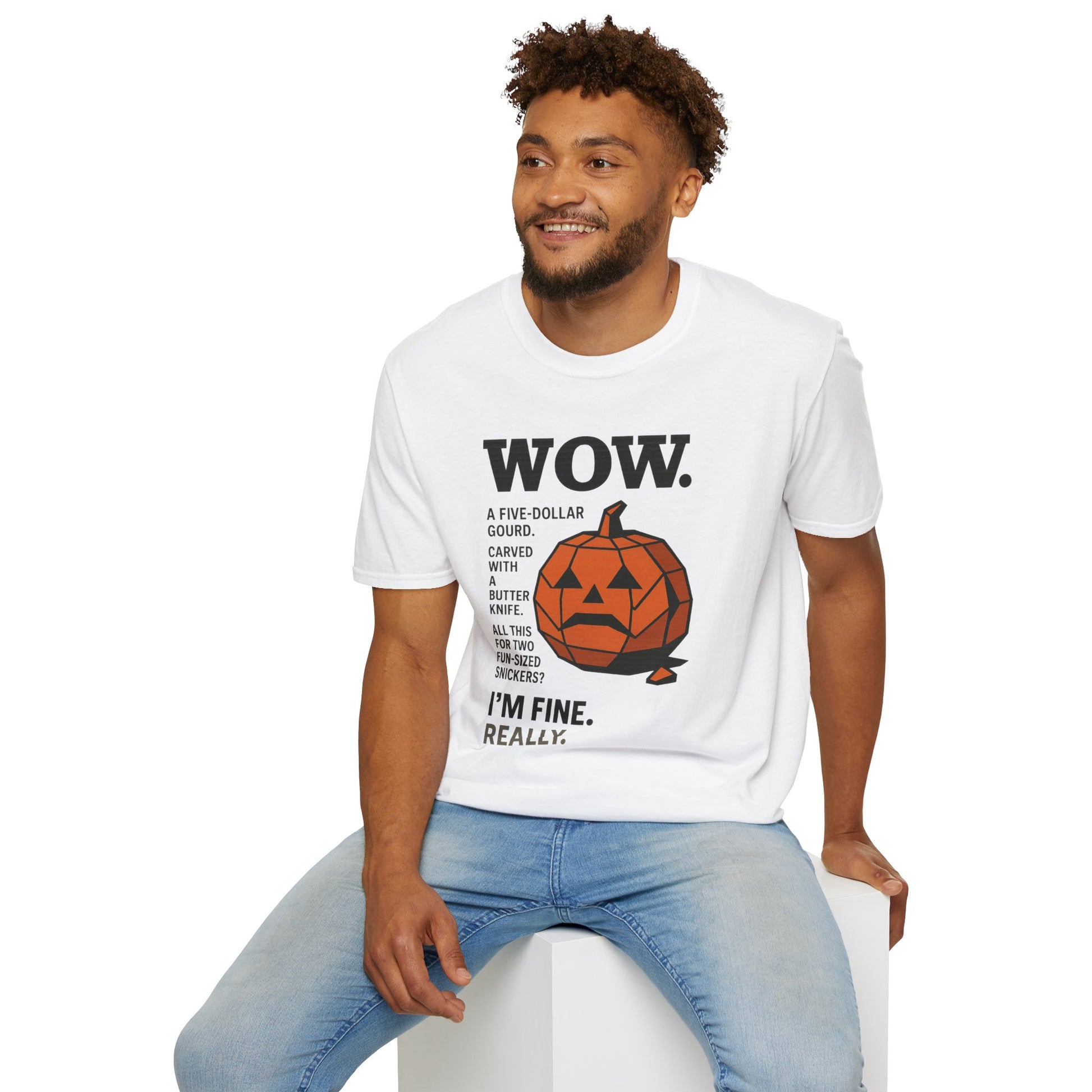 Show off your sarcastic side this Halloween with our geometric jack-o’-lantern tee. Featuring a disillusioned pumpkin and witty text about candy struggles, this premium graphic shirt is perfect for anyone who loves humor, Halloween, and a little bit of cynicism.