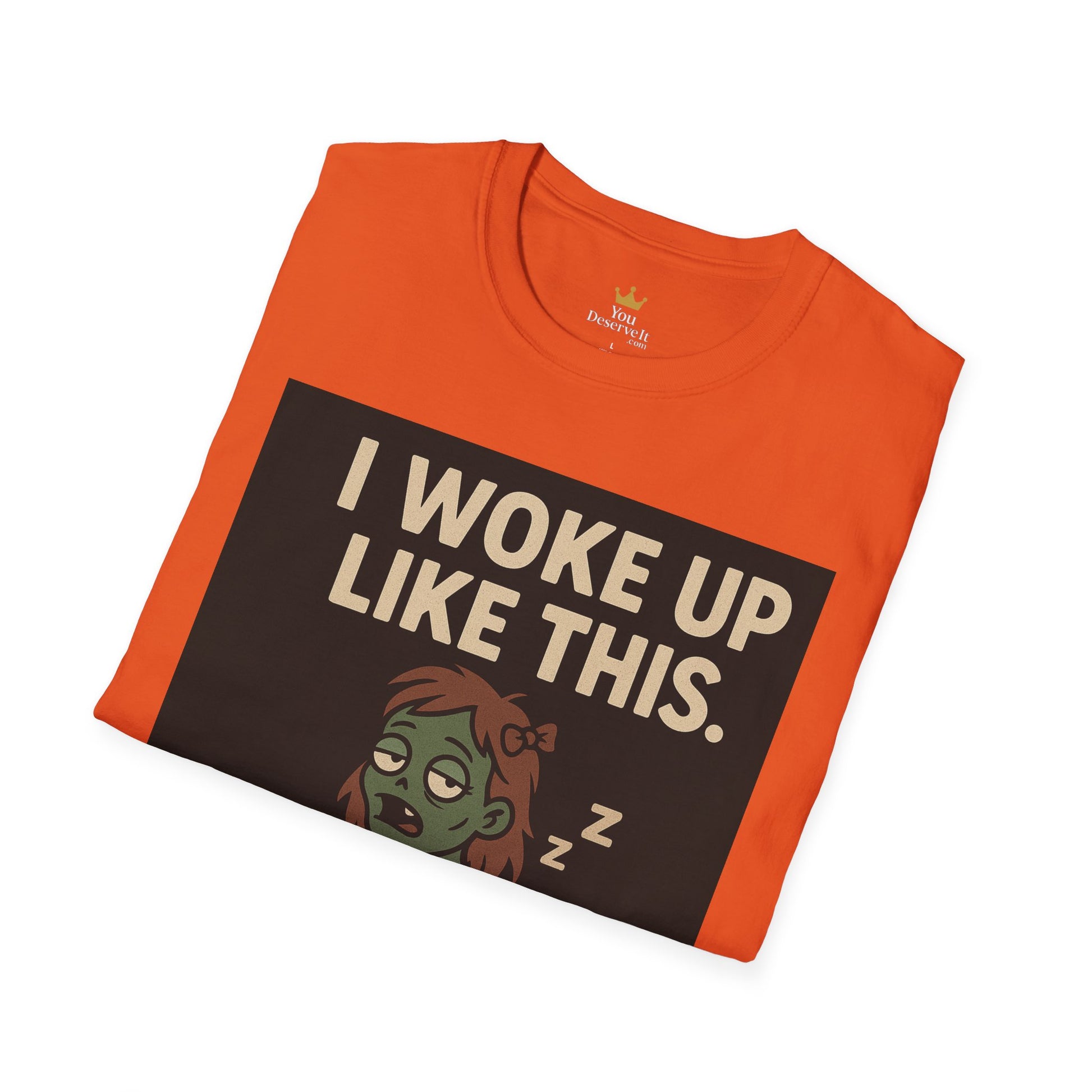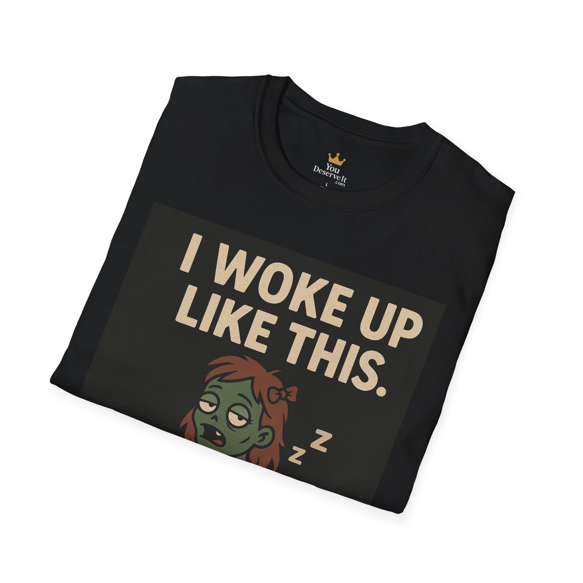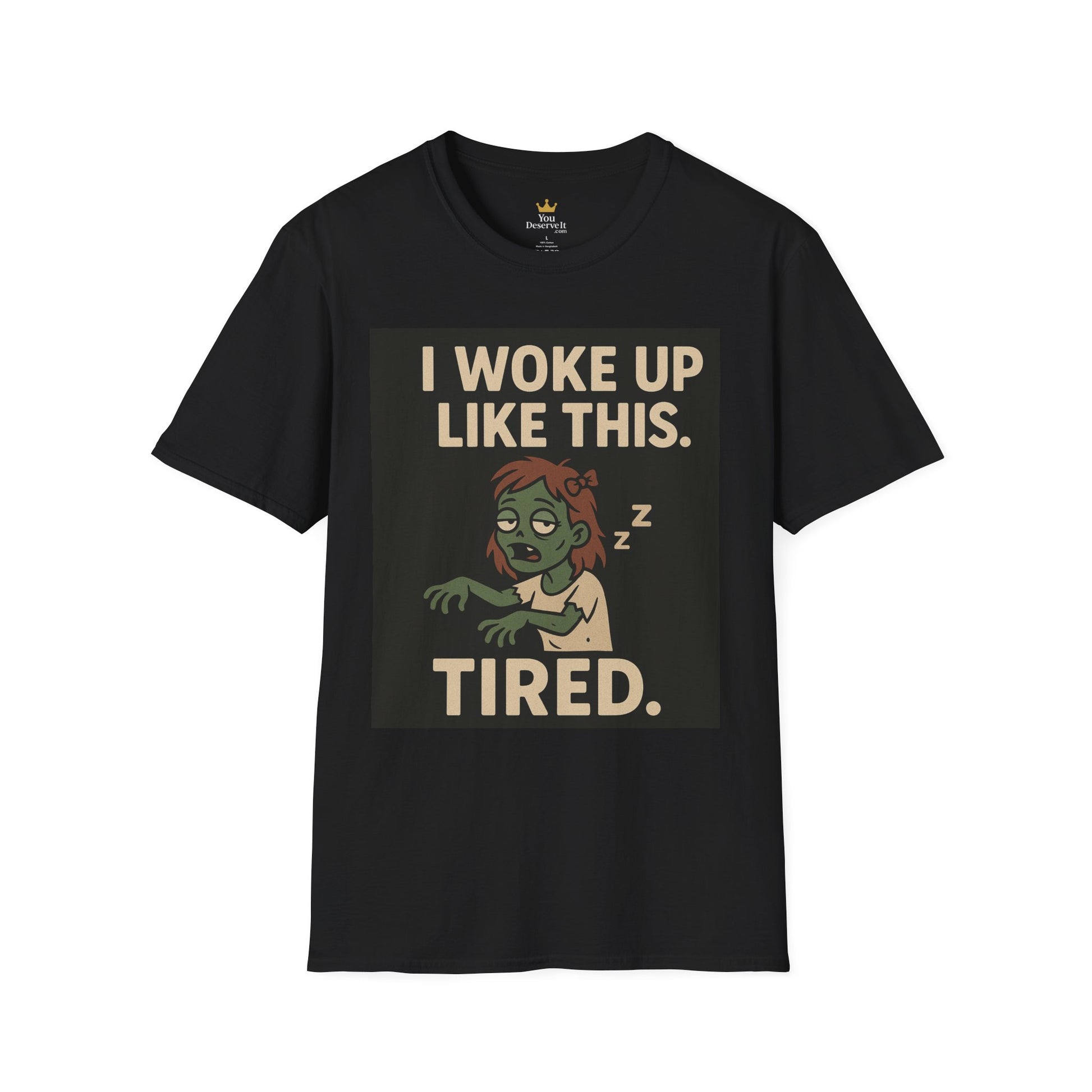 I Woke Up Like This Tired Zombie Girl Shirt | Funny Halloween Exhausted Graphic Tee