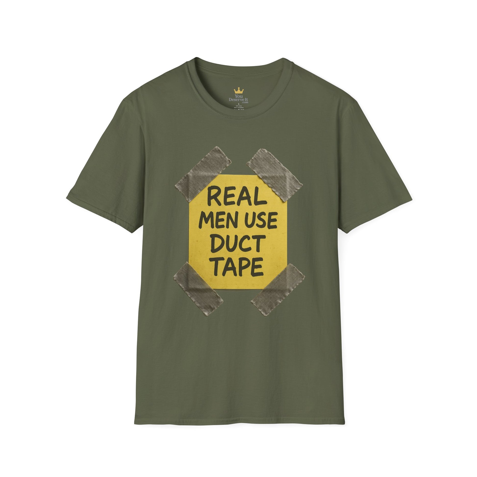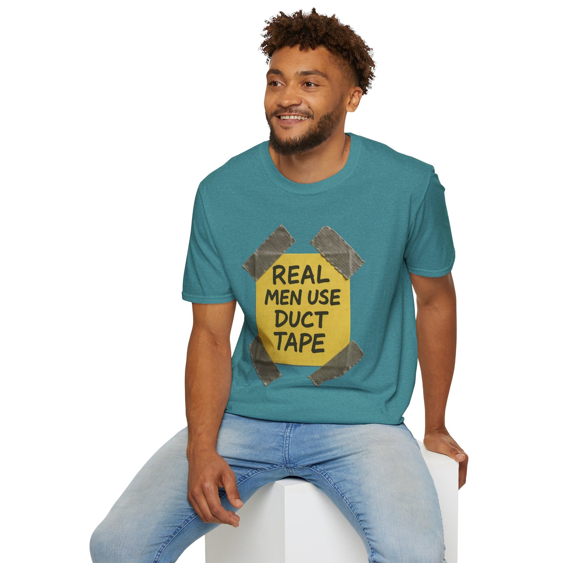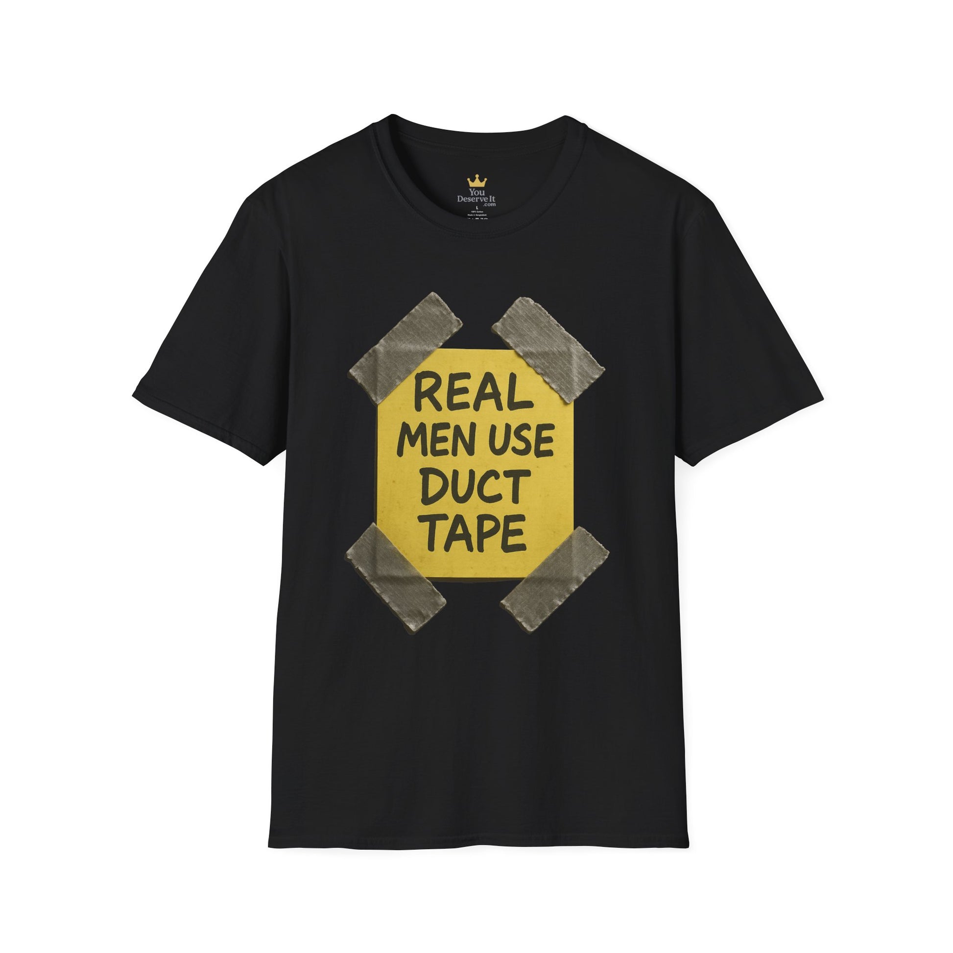 Real Men Use Duct Tape™ Funny Sticky Note T-Shirt – Bold DIY Humor Tee, Casual Wear, Handy Man Shirt, Great for Father's Day