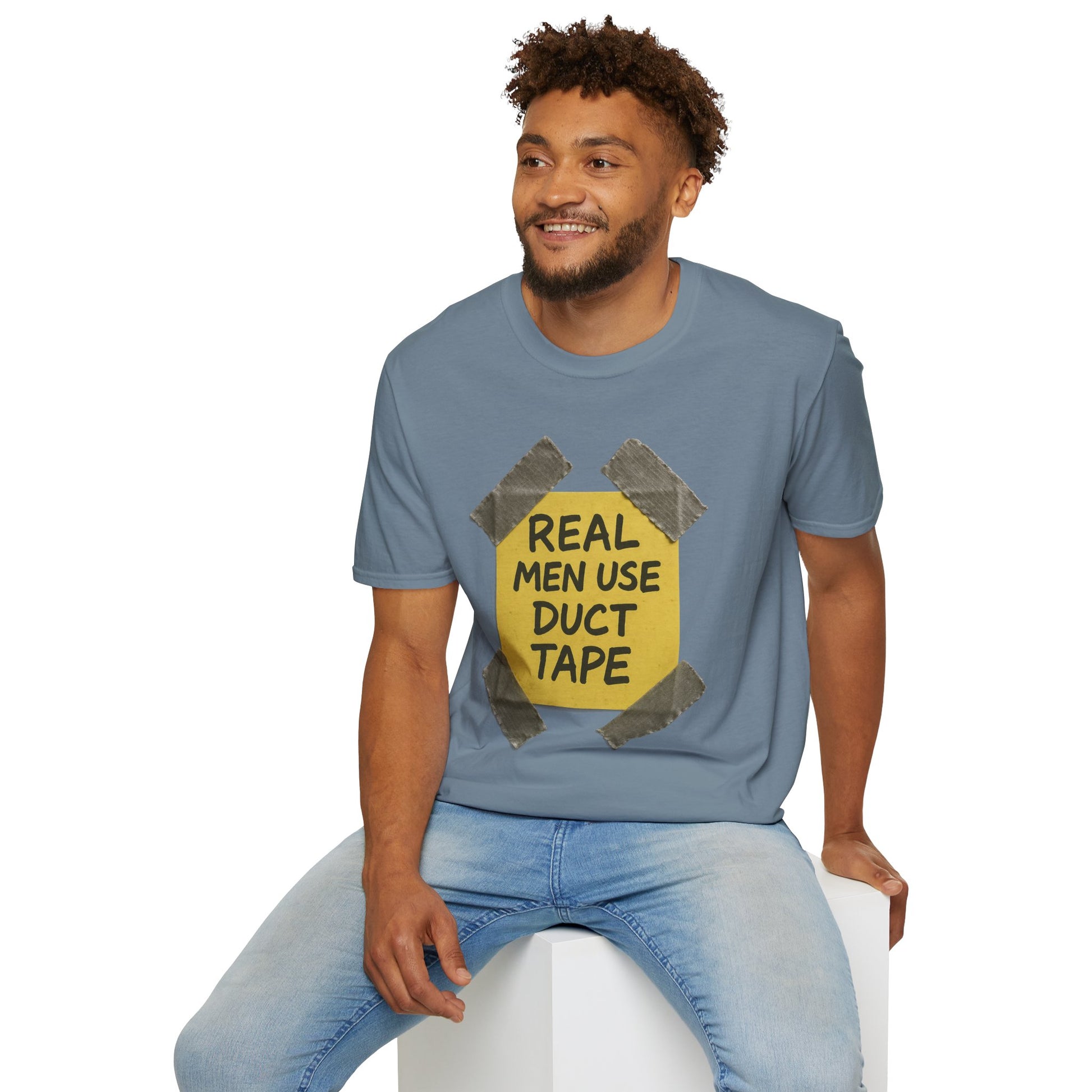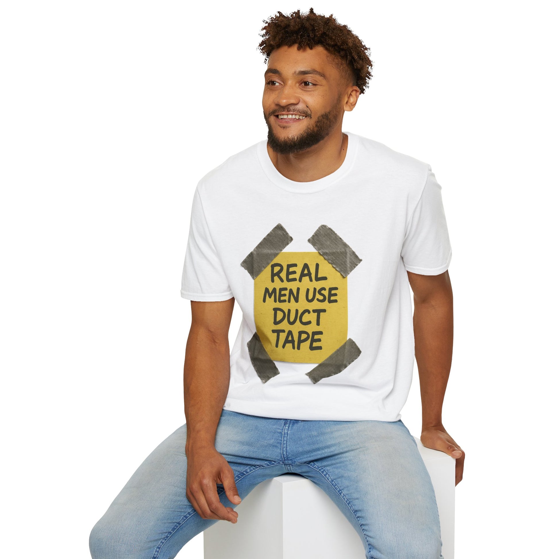 REAL MEN USE DUCT TAPE | Double-Sided '80s Fix-It T-Shirt | Bold DIY Humor Tee, Casual Wear, Handy Man Shirt, Great for Father's Day