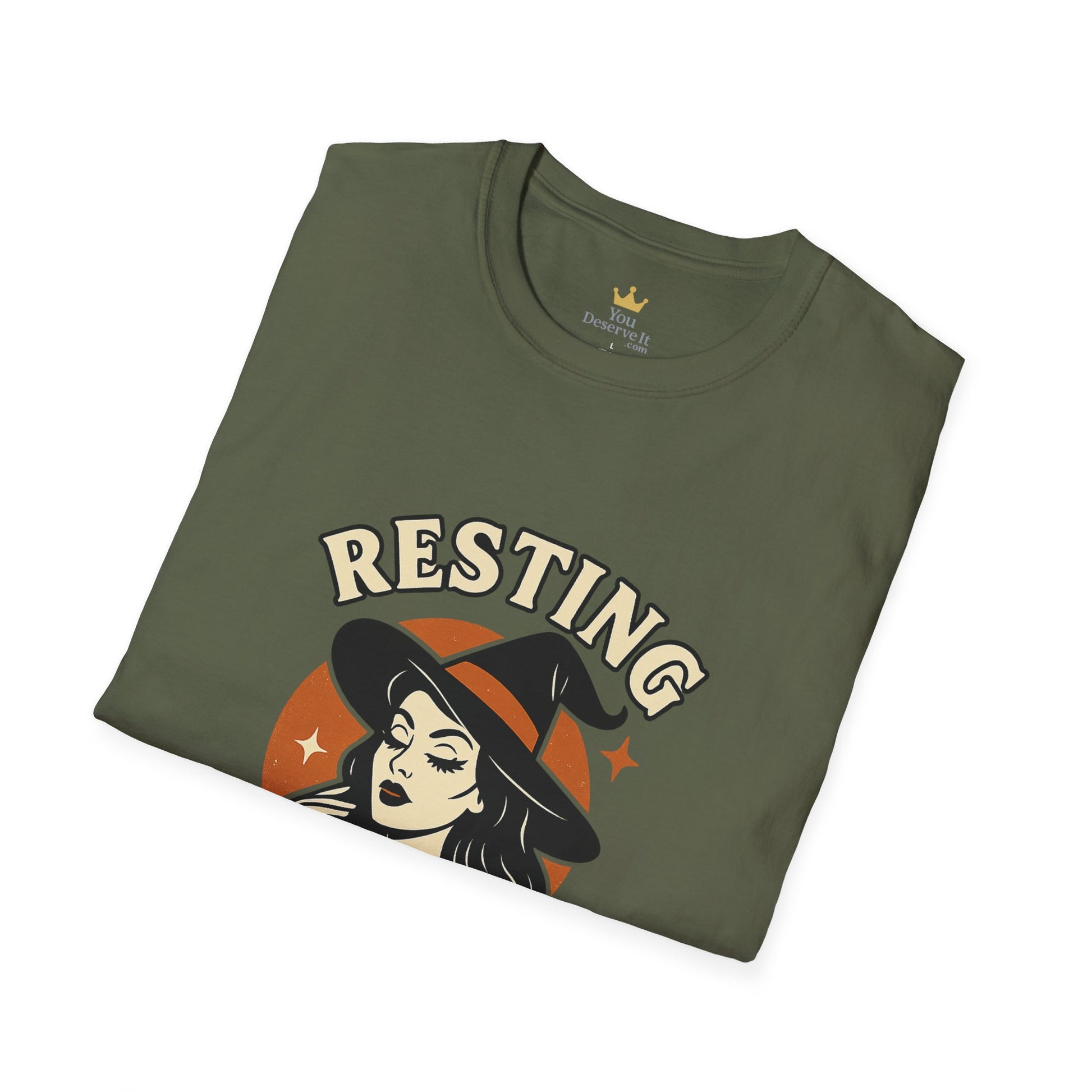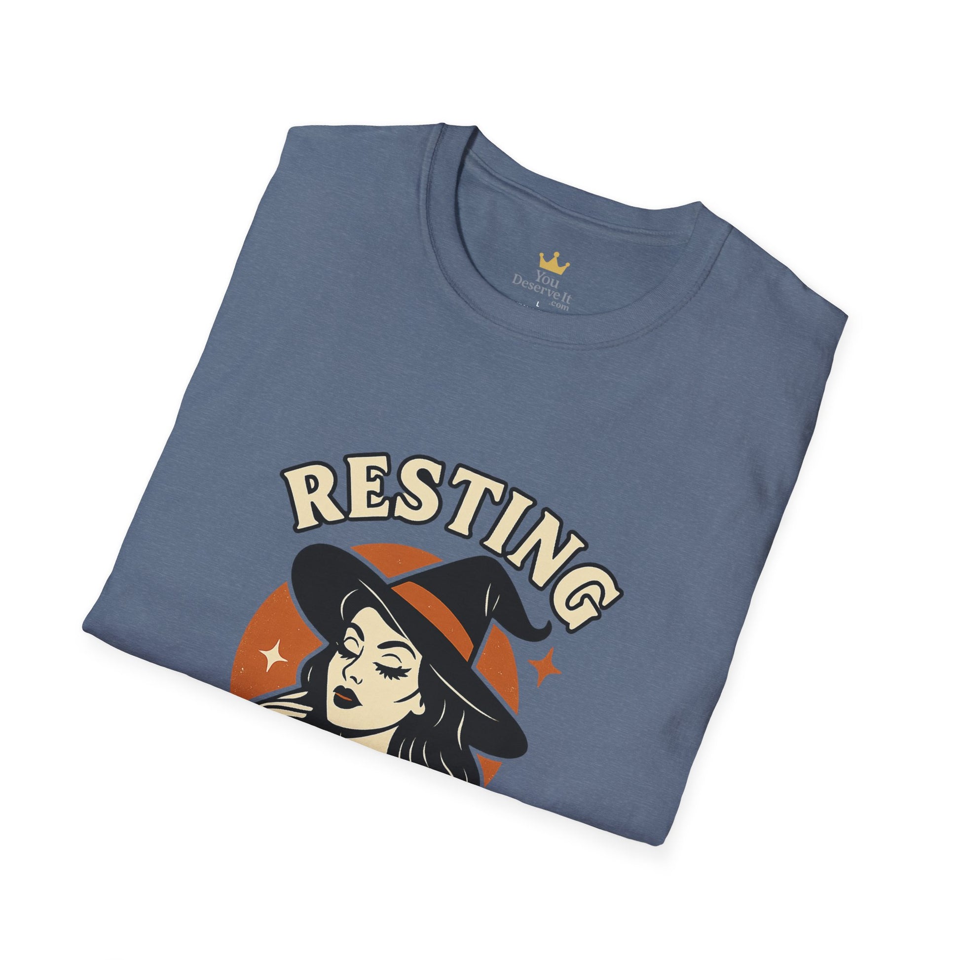 Mood: spellbound and unbothered. This fierce witch has perfected the art of the deadpan. With vintage flair and a broom-load of attitude, this Halloween tee is perfect for those who celebrate spooky season with side-eye and sass. Whether you're haunting a party or just haunting your coworkers, this shirt casts the right spell.