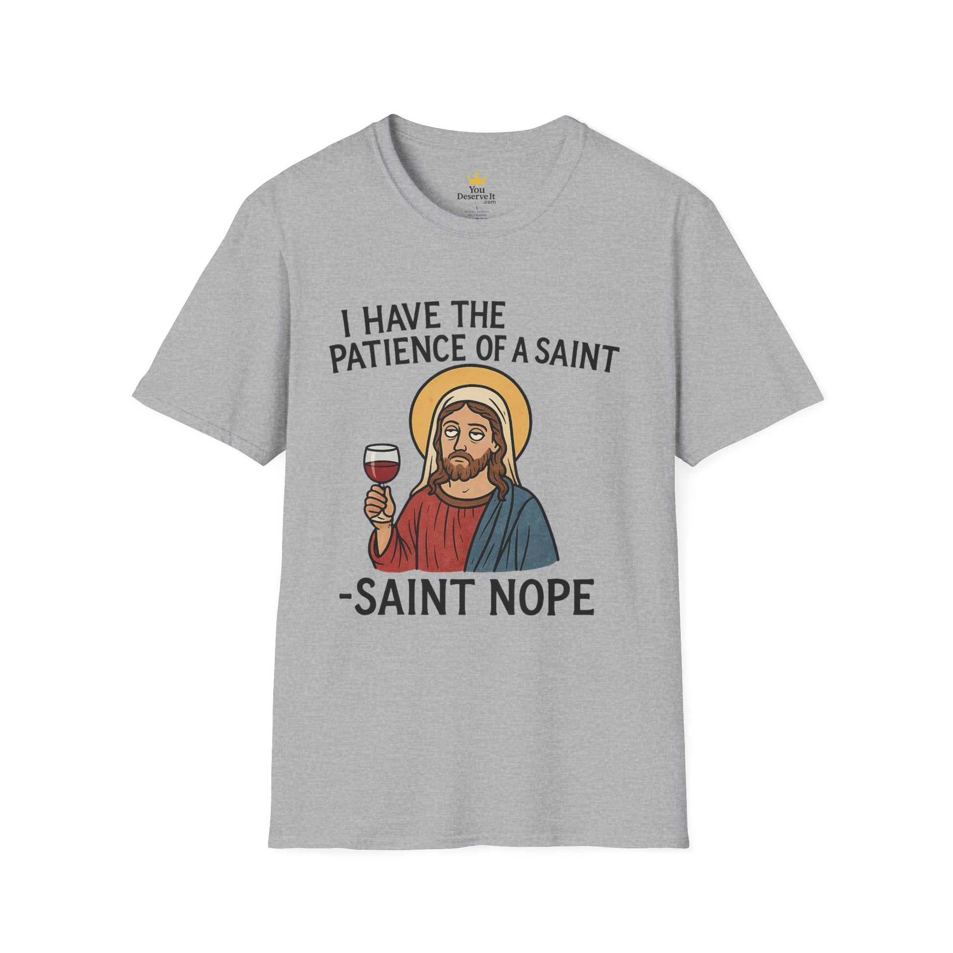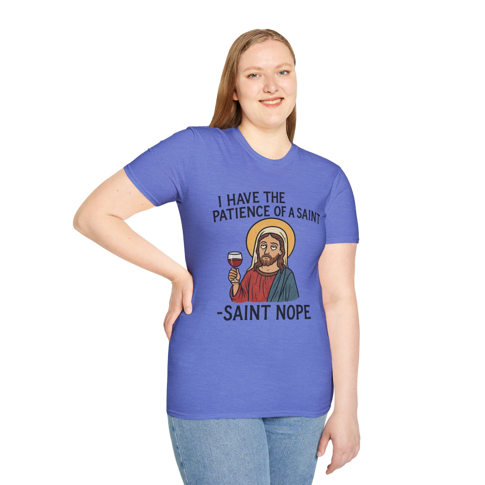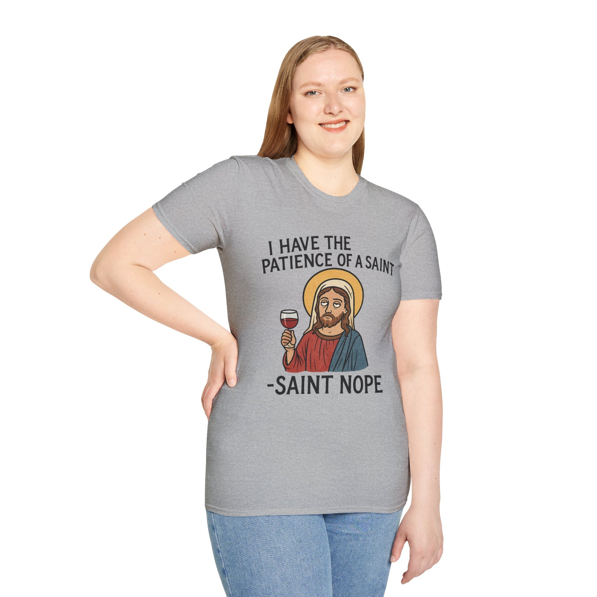 Saint Nope Funny Jesus T-Shirt | "Patience of a Saint" Sarcastic Wine Tee