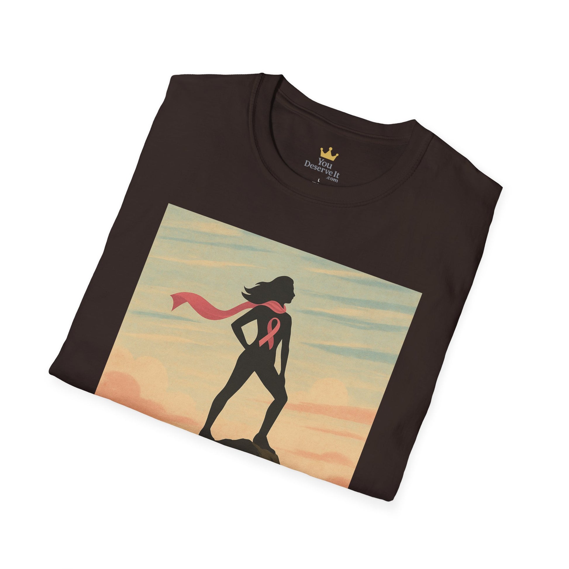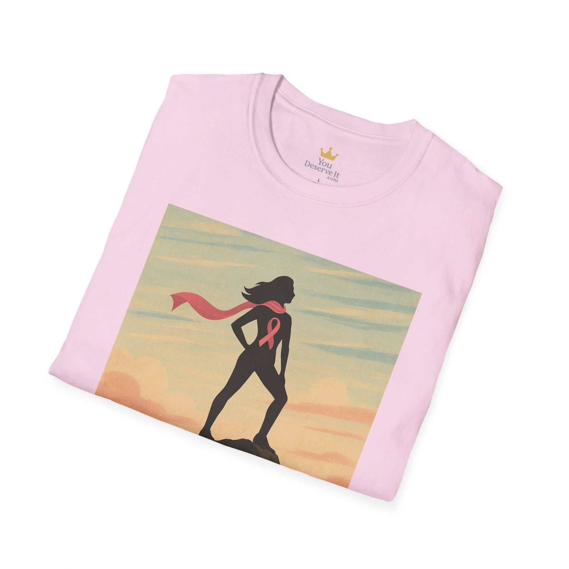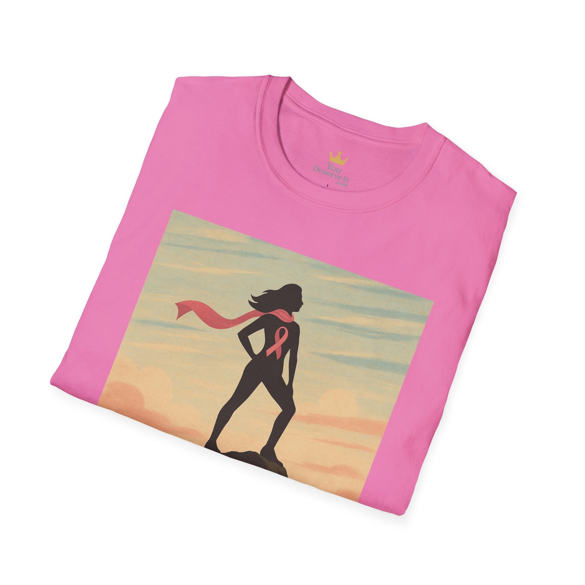 Rise. Resist. Repeat. This “Still Standing” tee celebrates every warrior who’s faced breast cancer and kept climbing. Featuring a silhouetted heroine standing strong atop a mountain with a flowing ribbon cape, this bold design shouts survival, strength, and unshakable spirit. Soft, comfortable, and powerful—just like the people who wear it.
