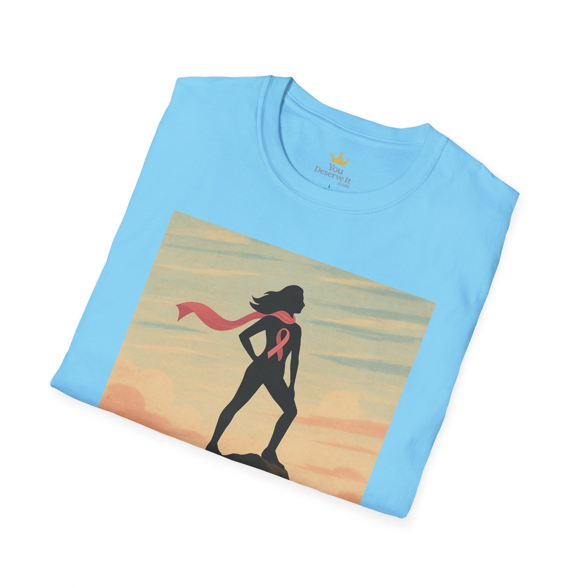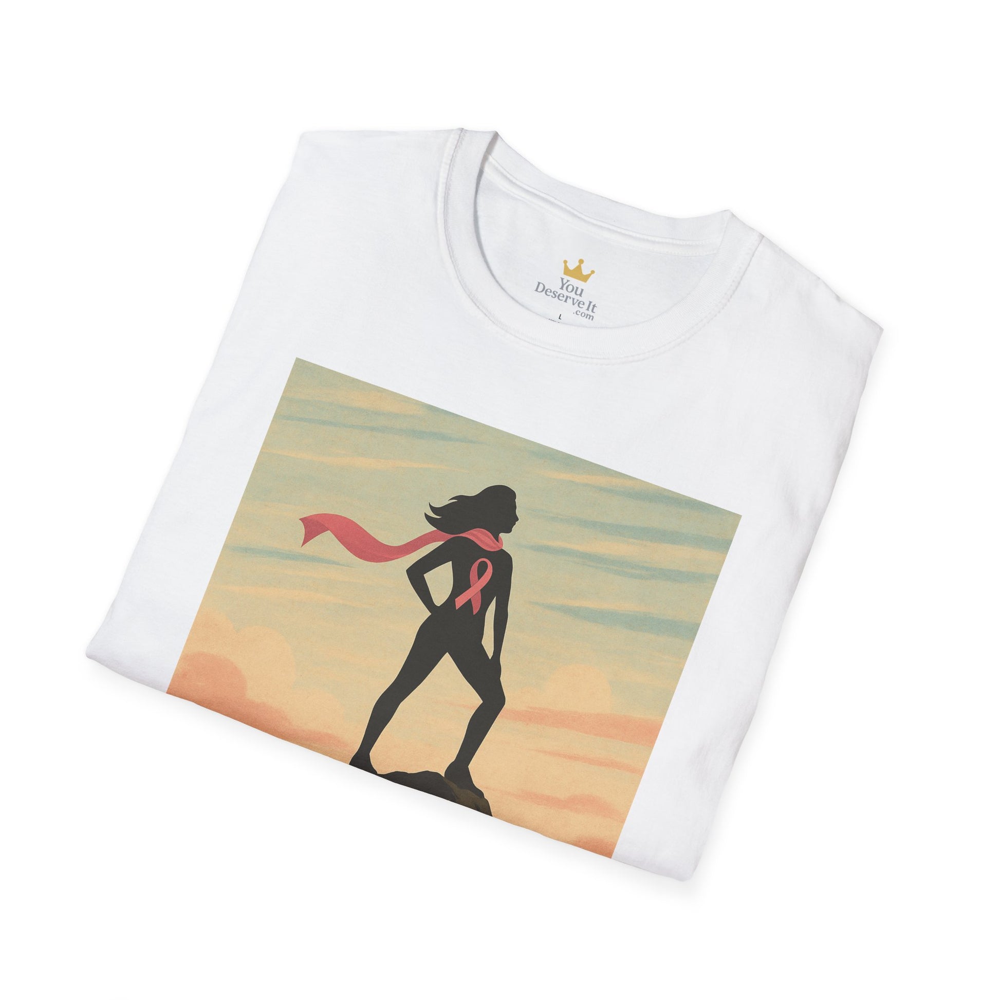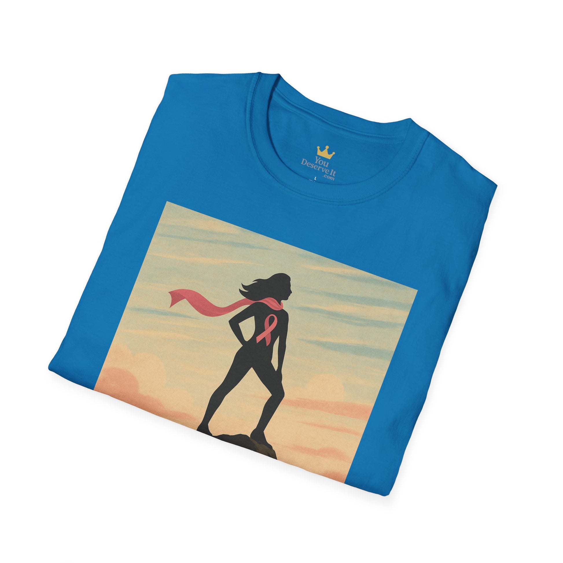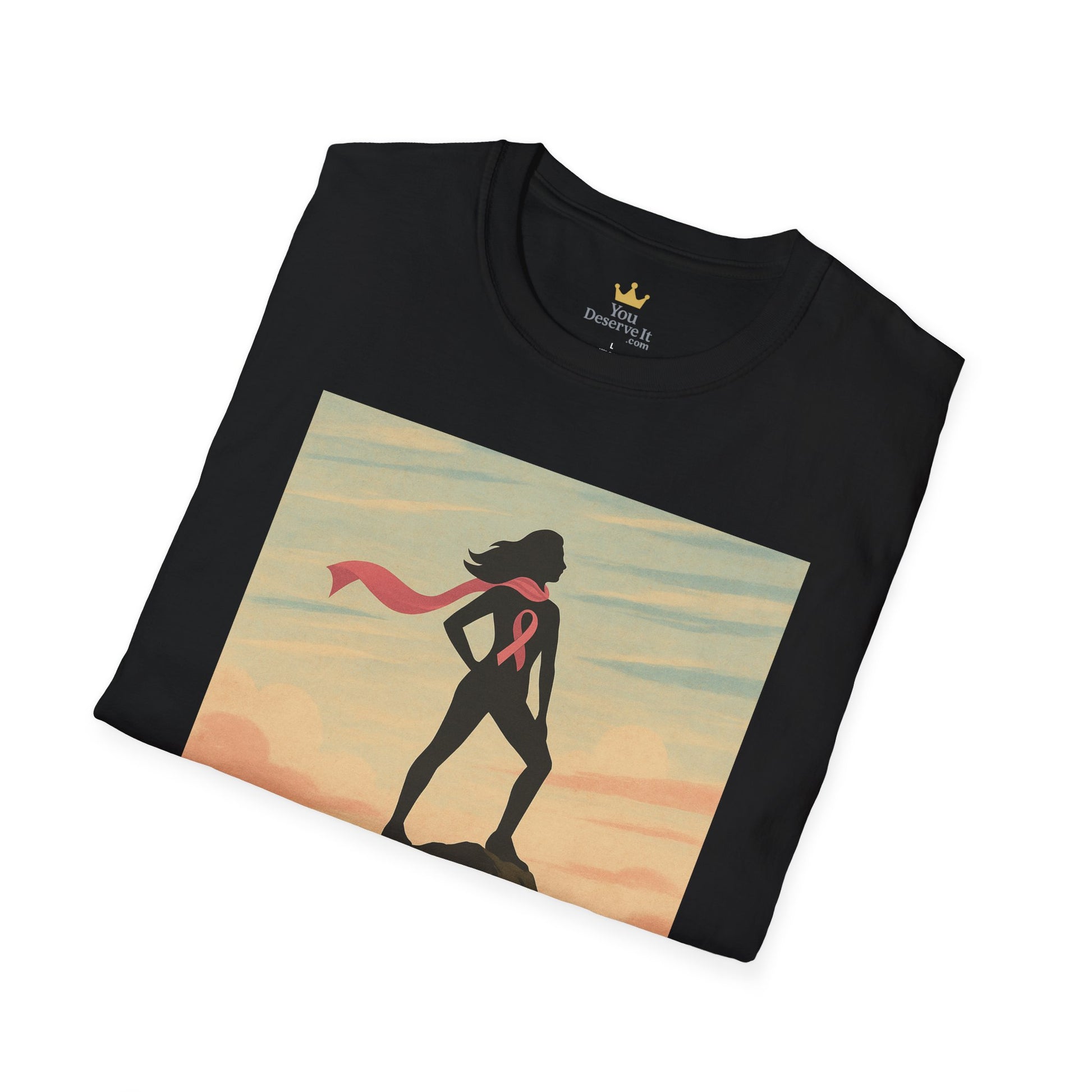 Rise. Resist. Repeat. This “Still Standing” tee celebrates every warrior who’s faced breast cancer and kept climbing. Featuring a silhouetted heroine standing strong atop a mountain with a flowing ribbon cape, this bold design shouts survival, strength, and unshakable spirit. Soft, comfortable, and powerful—just like the people who wear it.