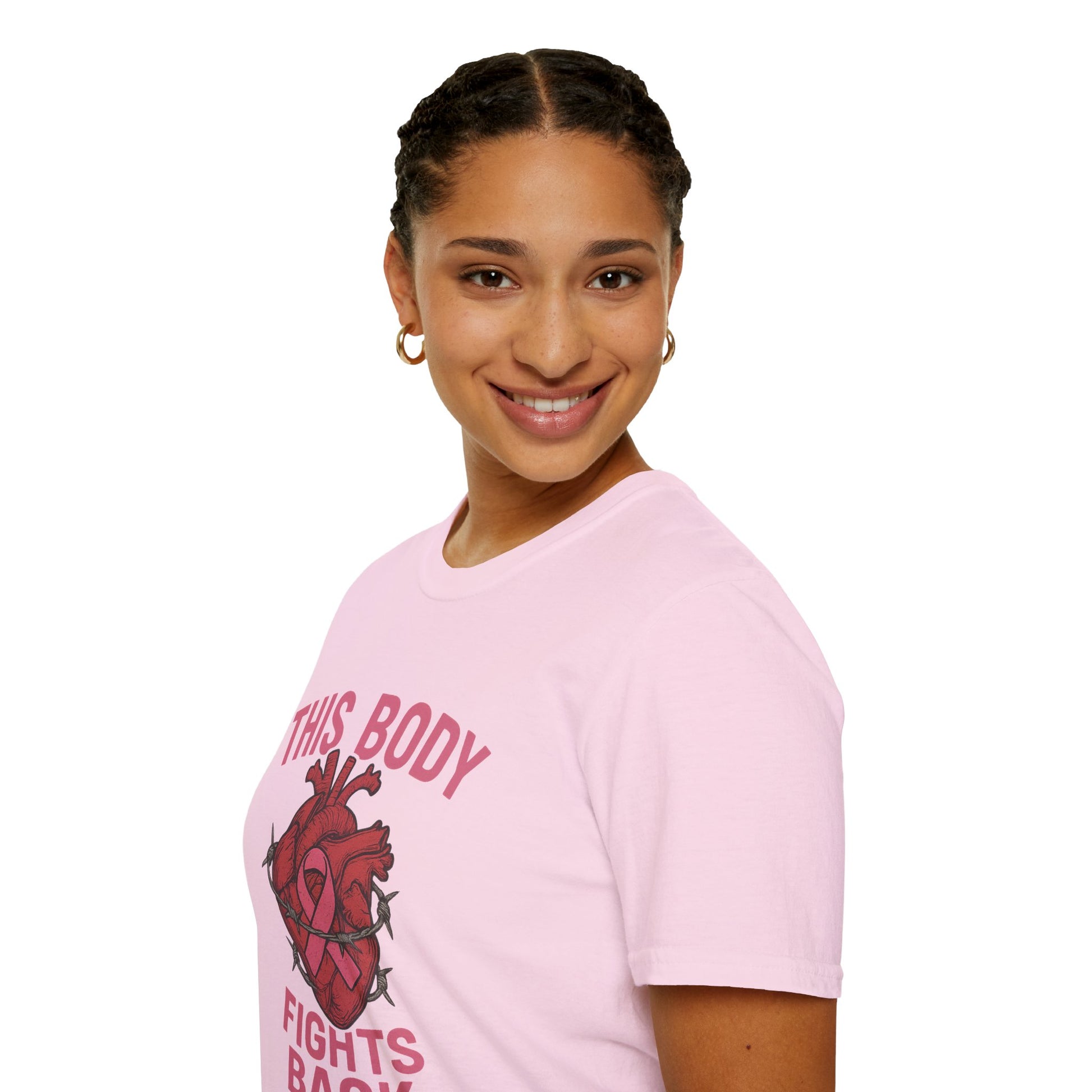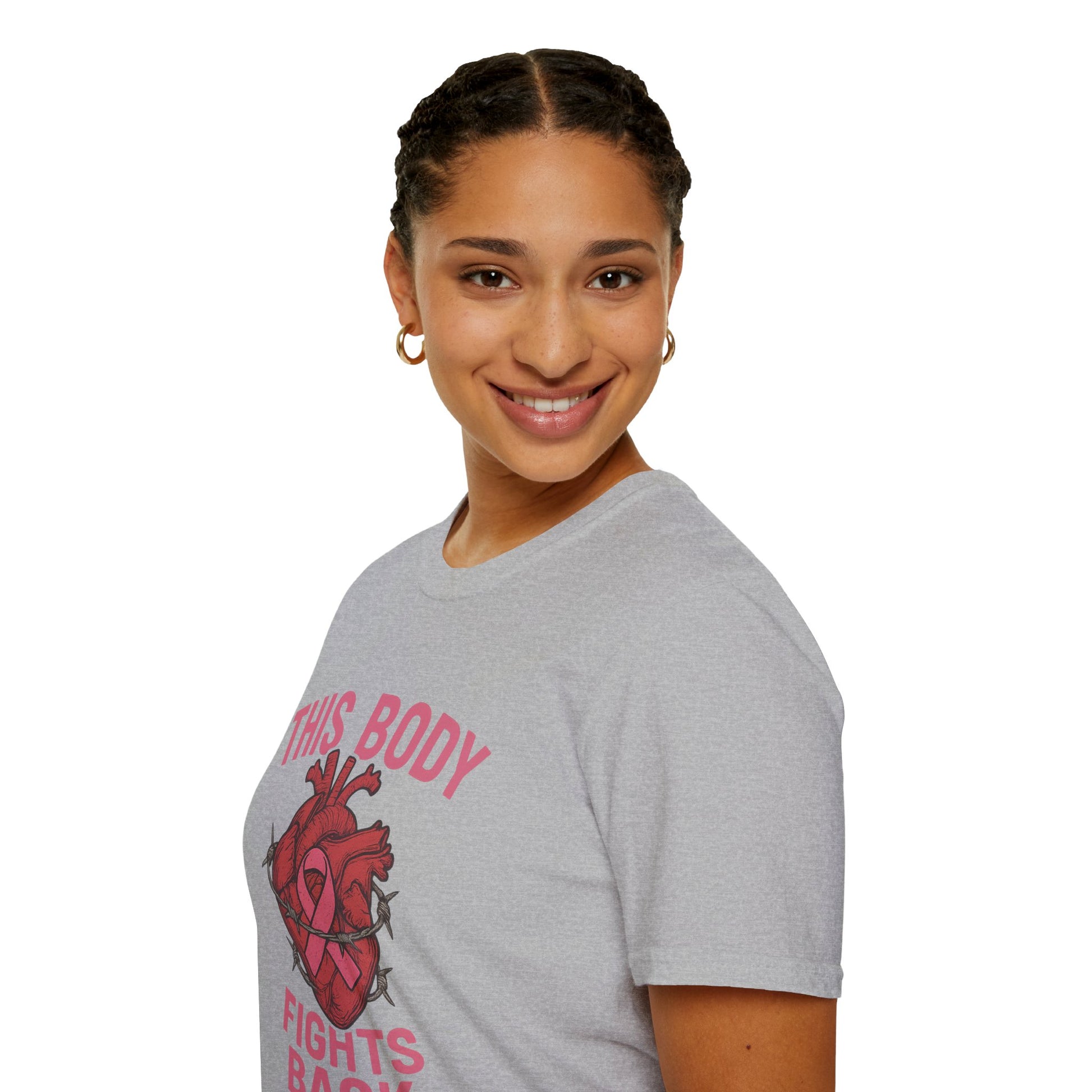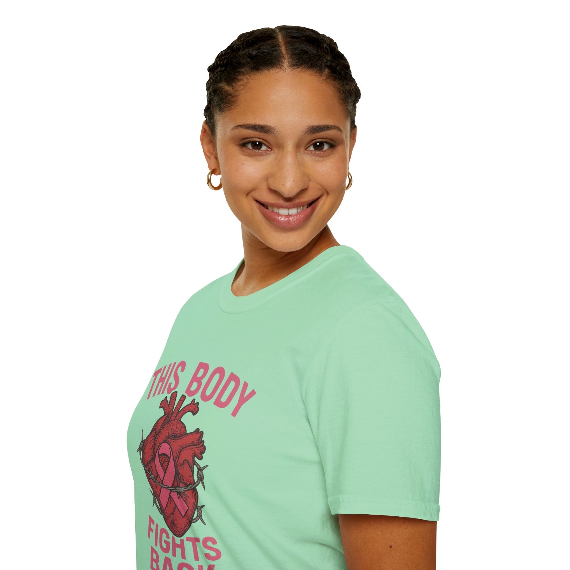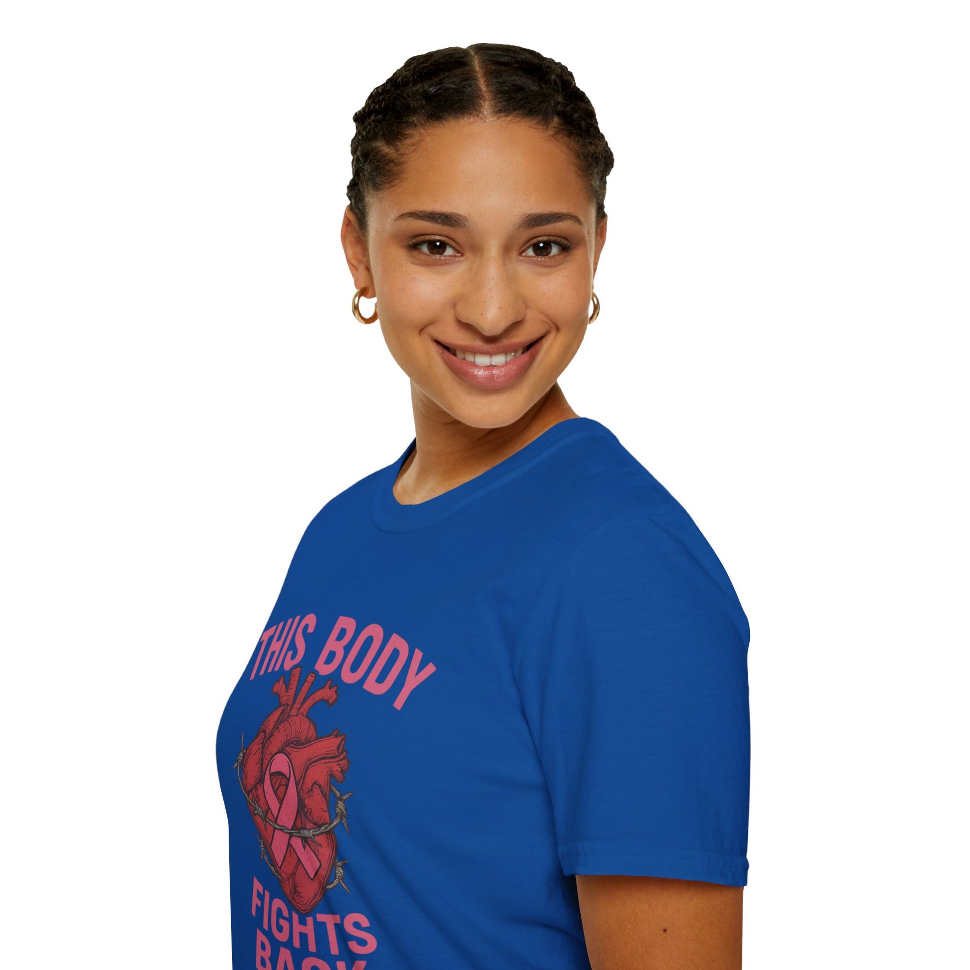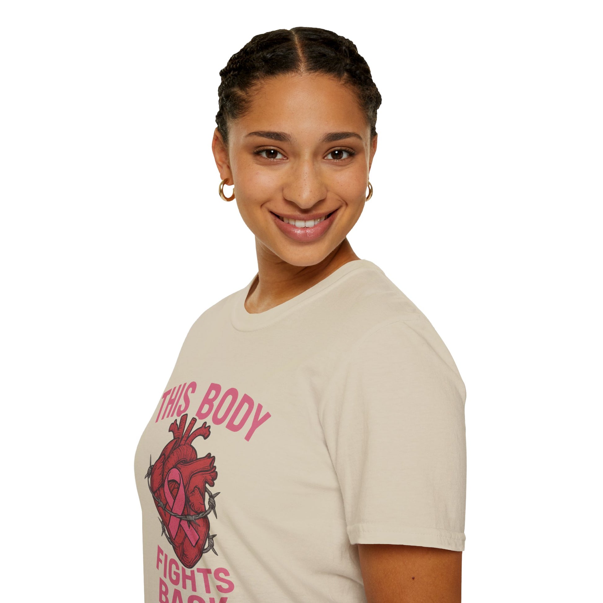 This Body Fights Back Shirt | Bold Breast Cancer Awareness Tee with Heart & Barbed Wire Design