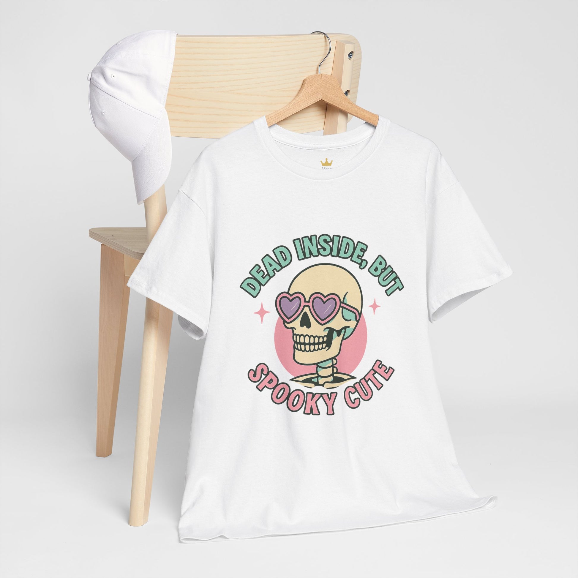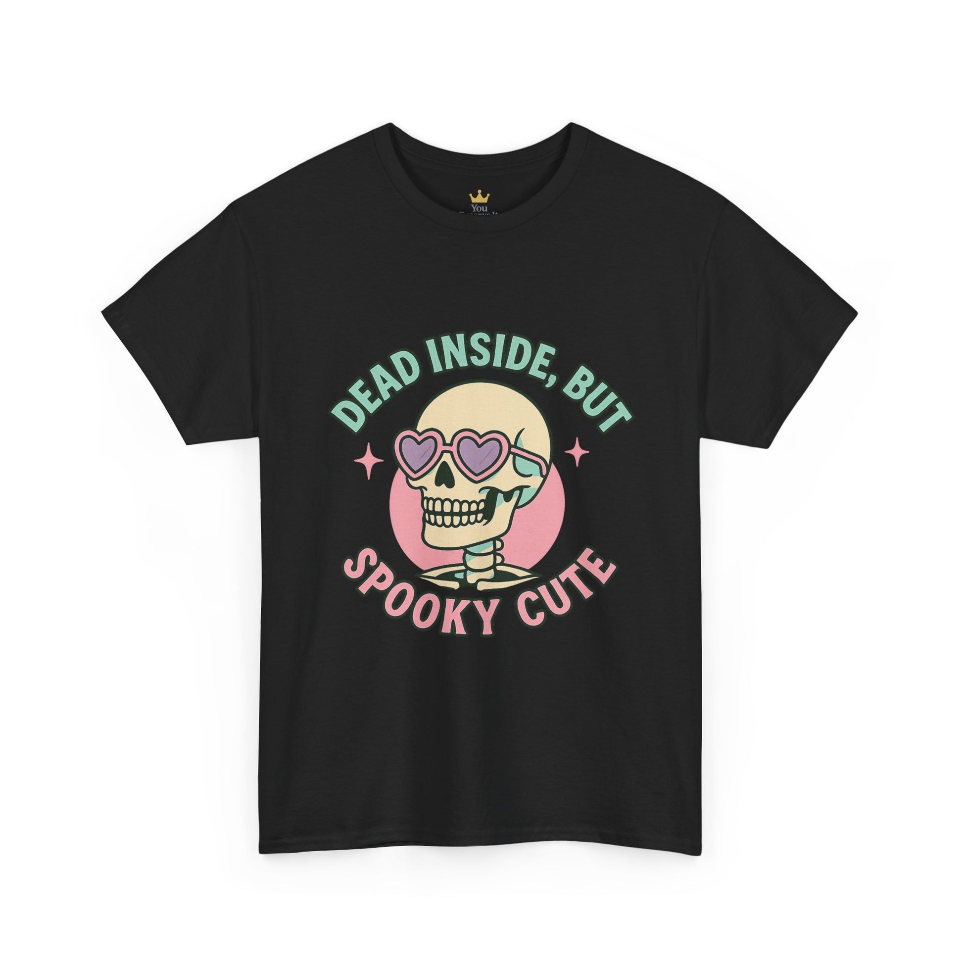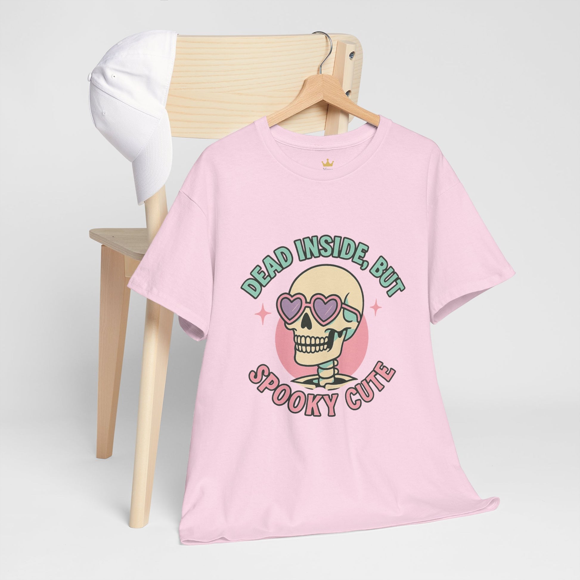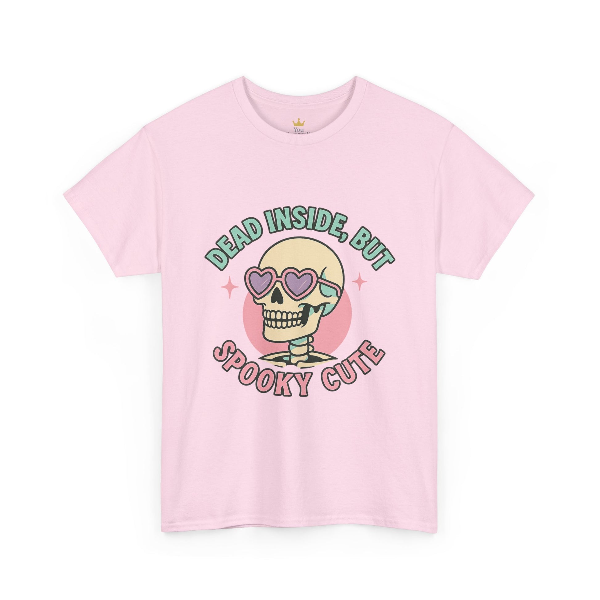 A little dead inside? Same. But that doesn’t mean you can’t be adorable while you're at it. This pastel-toned “Dead Inside, But Spooky Cute” shirt features a skeleton rocking heart-shaped sunglasses and a smile that screams sass. Perfect for spooky season—or any time you need to balance sarcasm with cuteness.