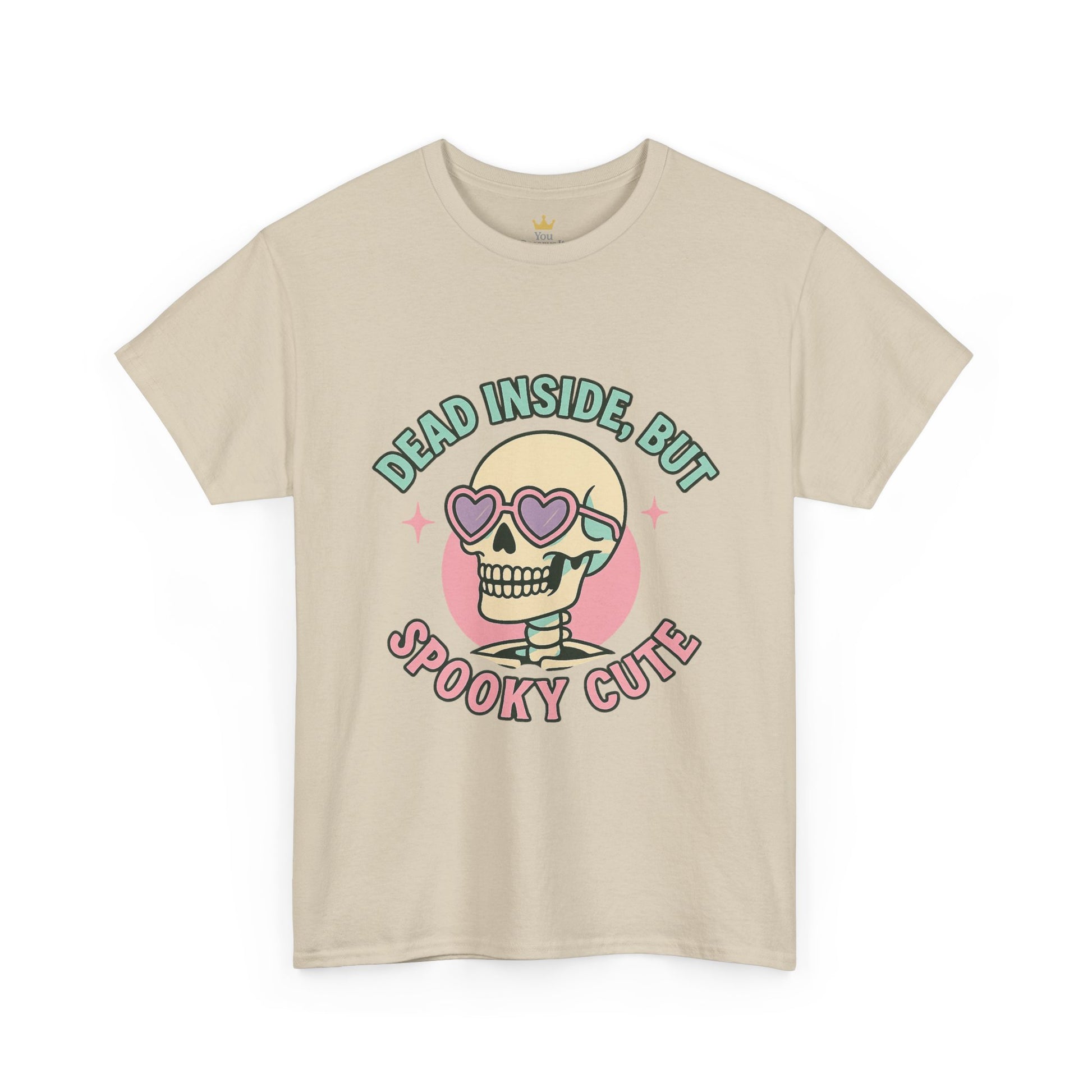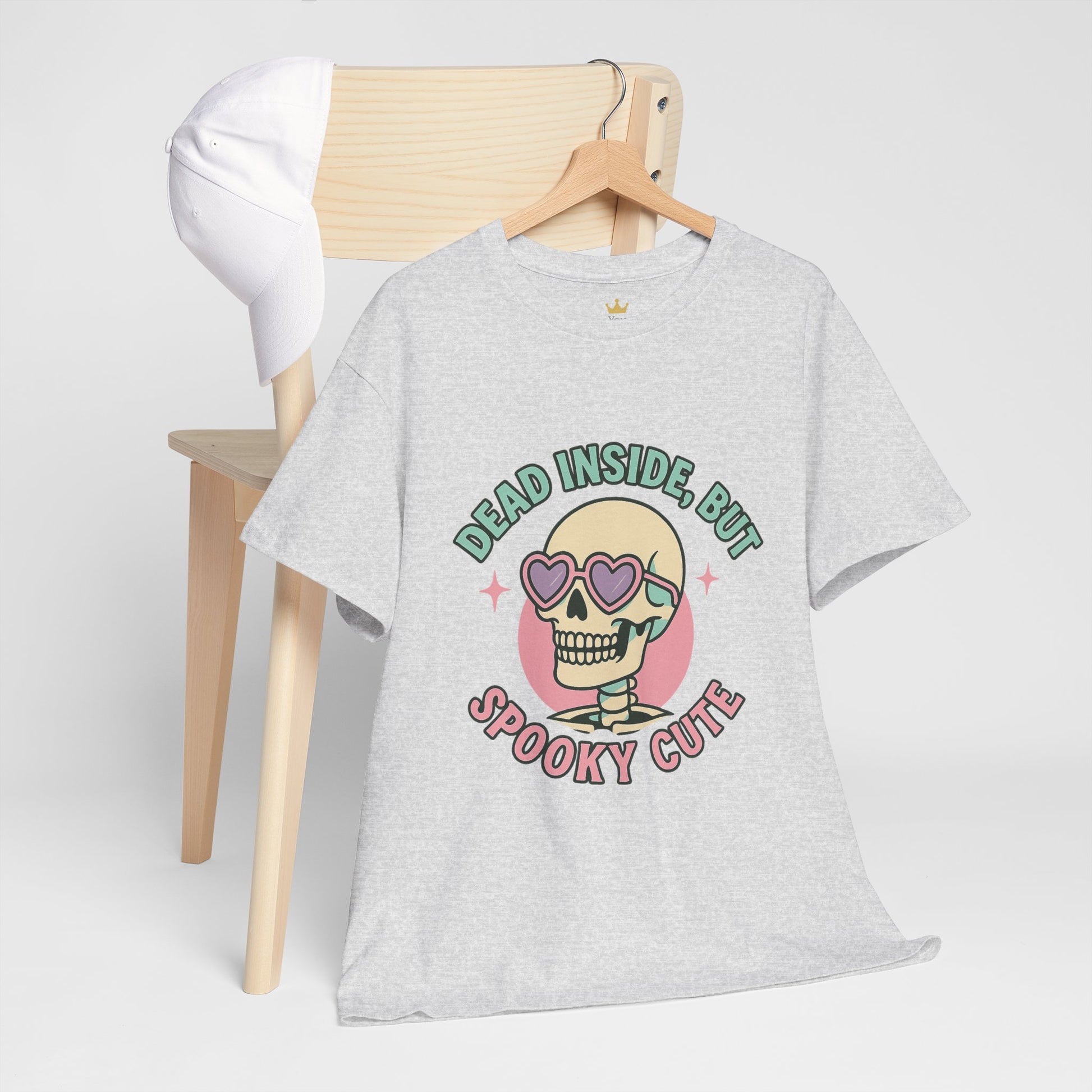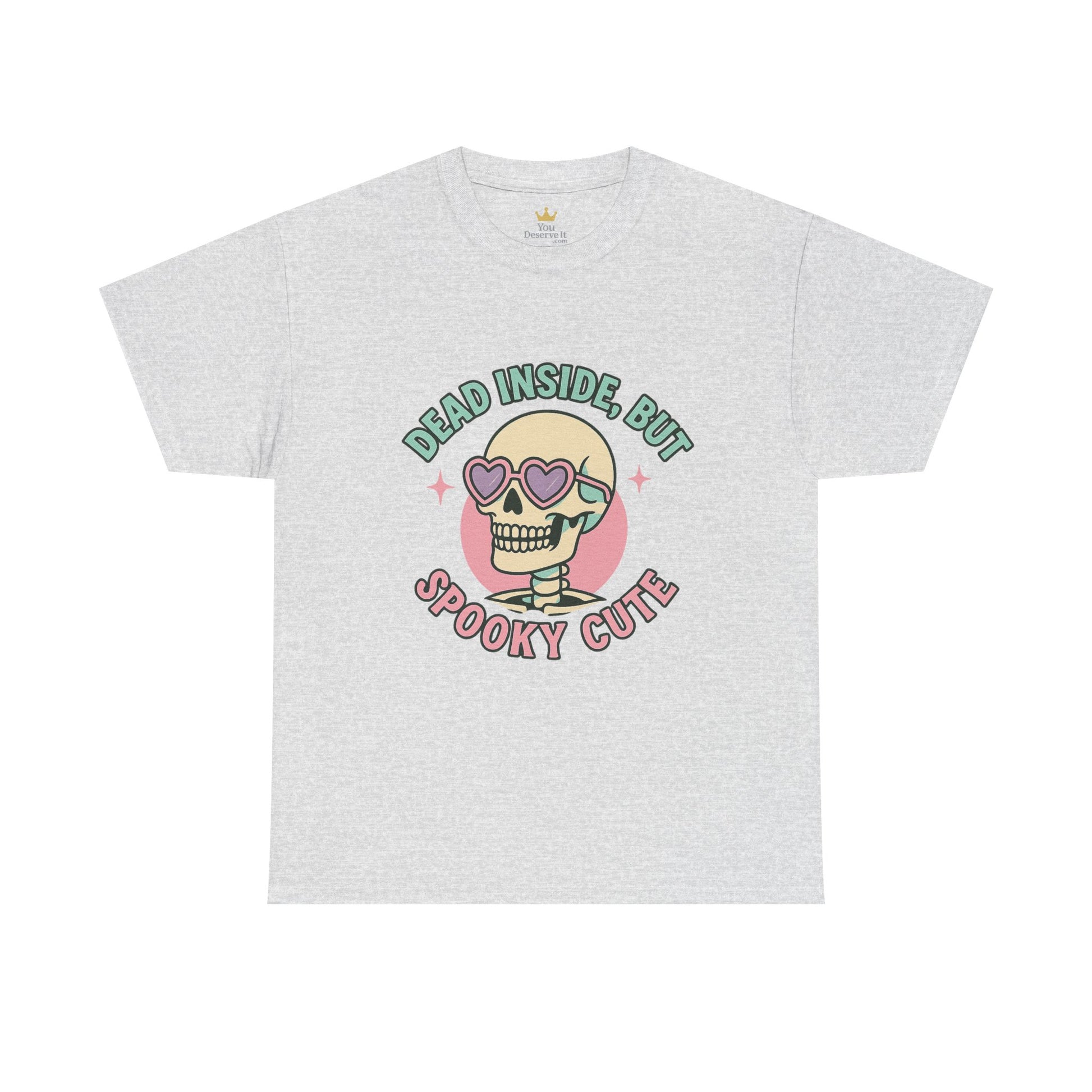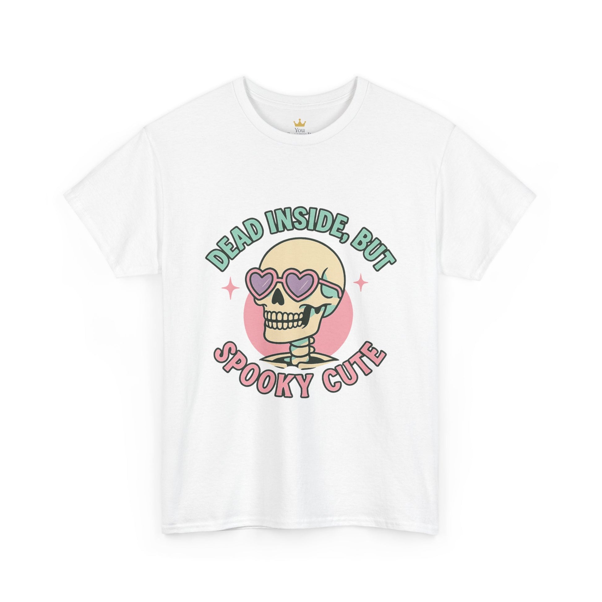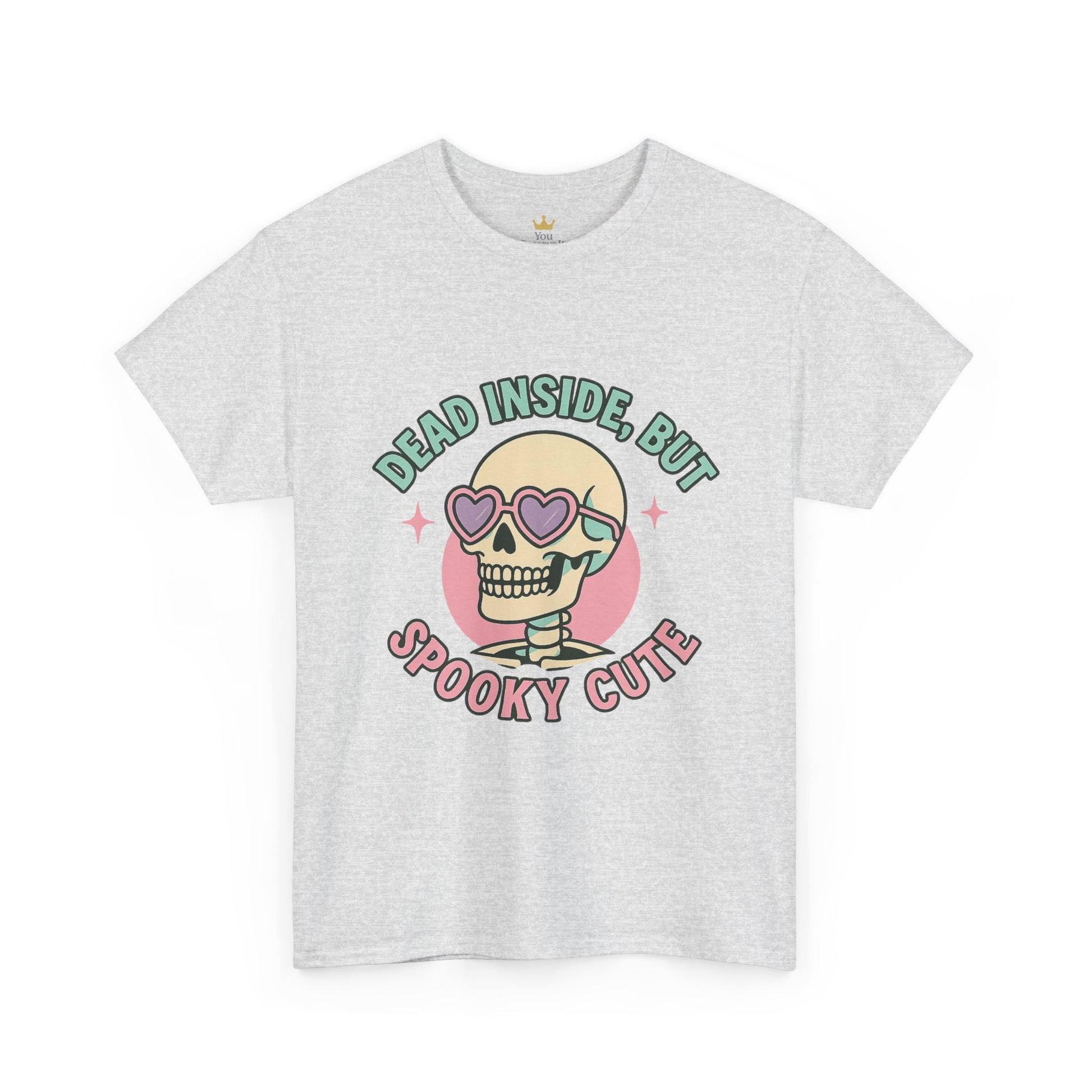 A little dead inside? Same. But that doesn’t mean you can’t be adorable while you're at it. This pastel-toned “Dead Inside, But Spooky Cute” shirt features a skeleton rocking heart-shaped sunglasses and a smile that screams sass. Perfect for spooky season—or any time you need to balance sarcasm with cuteness.