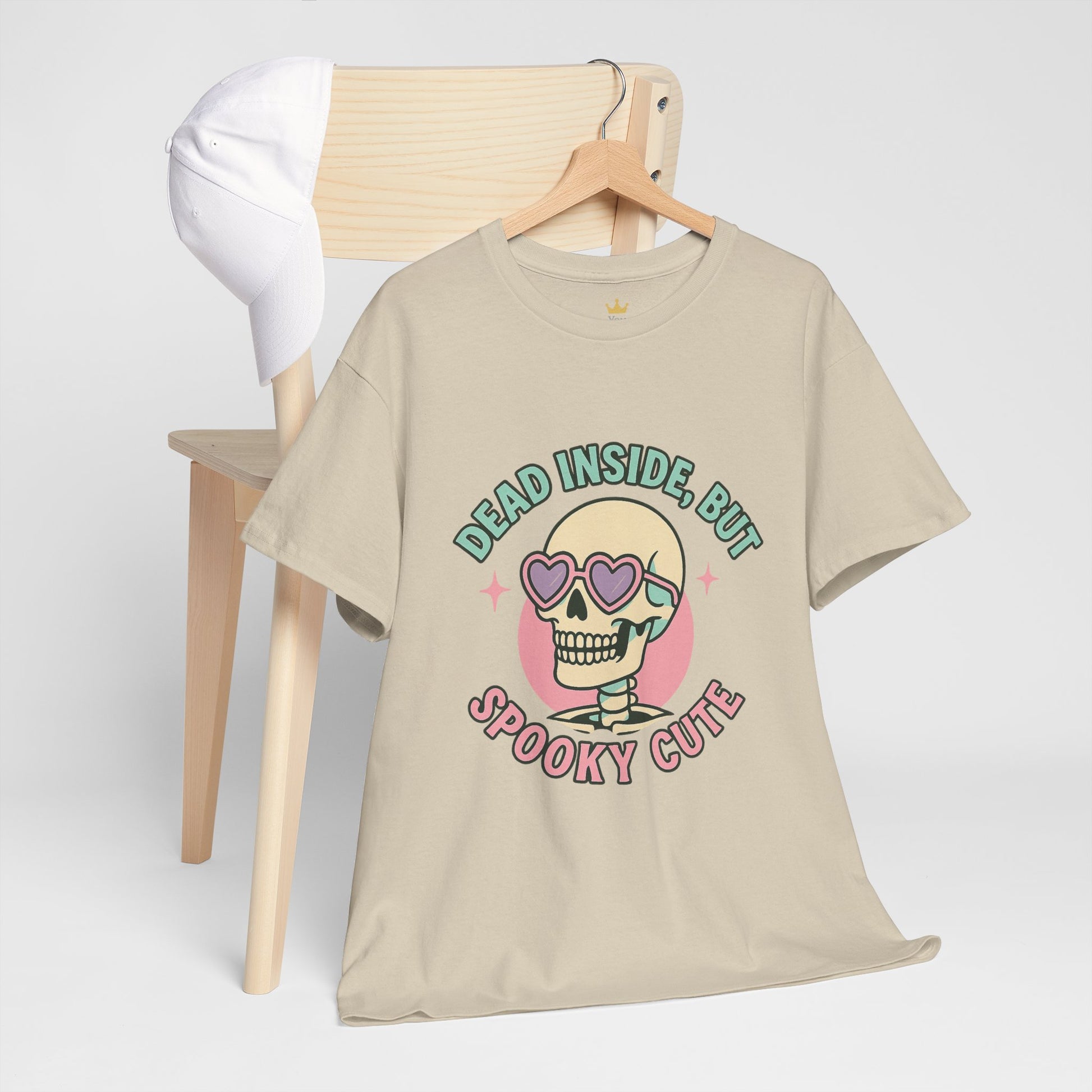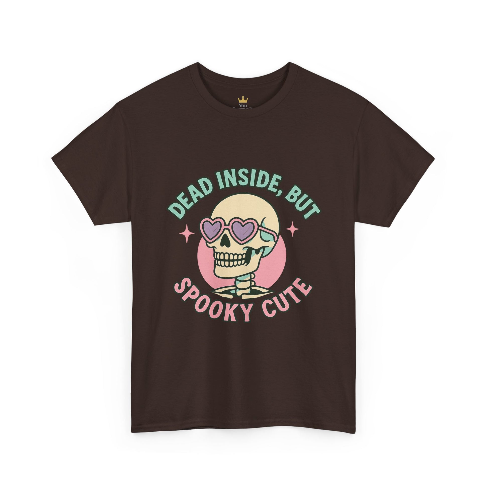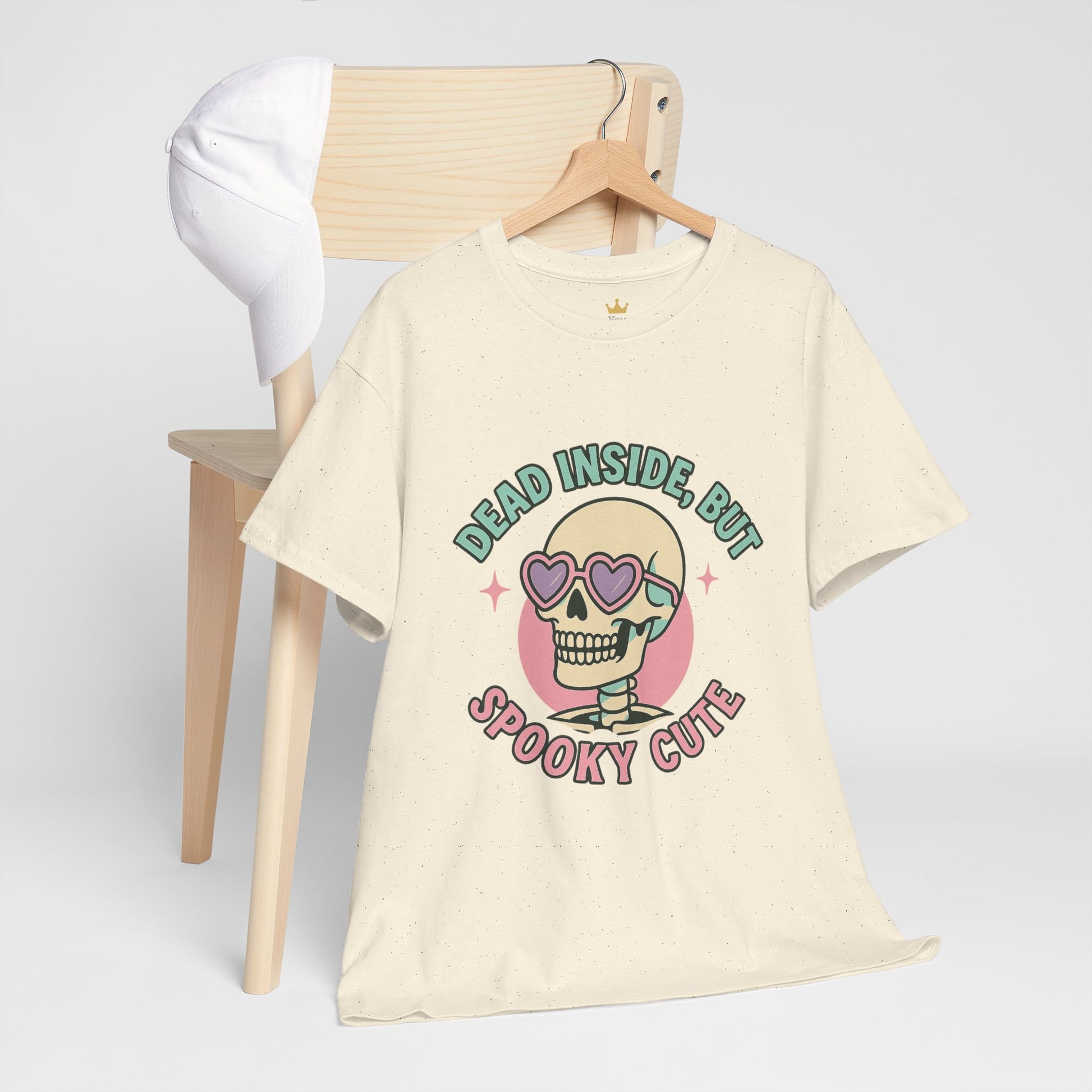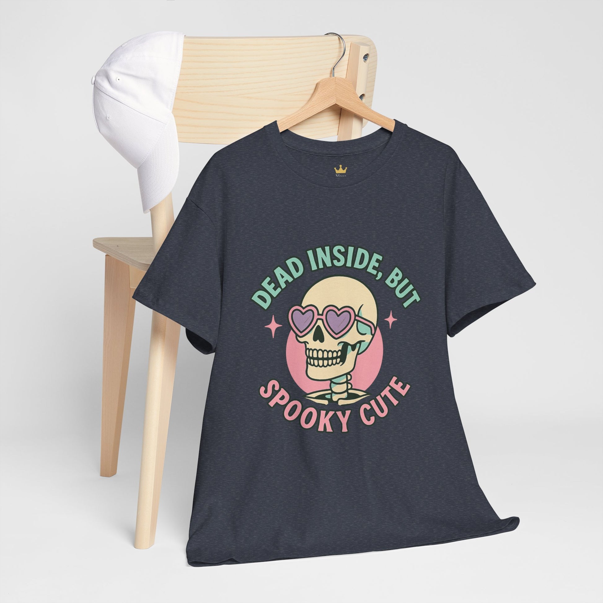 A little dead inside? Same. But that doesn’t mean you can’t be adorable while you're at it. This pastel-toned “Dead Inside, But Spooky Cute” shirt features a skeleton rocking heart-shaped sunglasses and a smile that screams sass. Perfect for spooky season—or any time you need to balance sarcasm with cuteness.